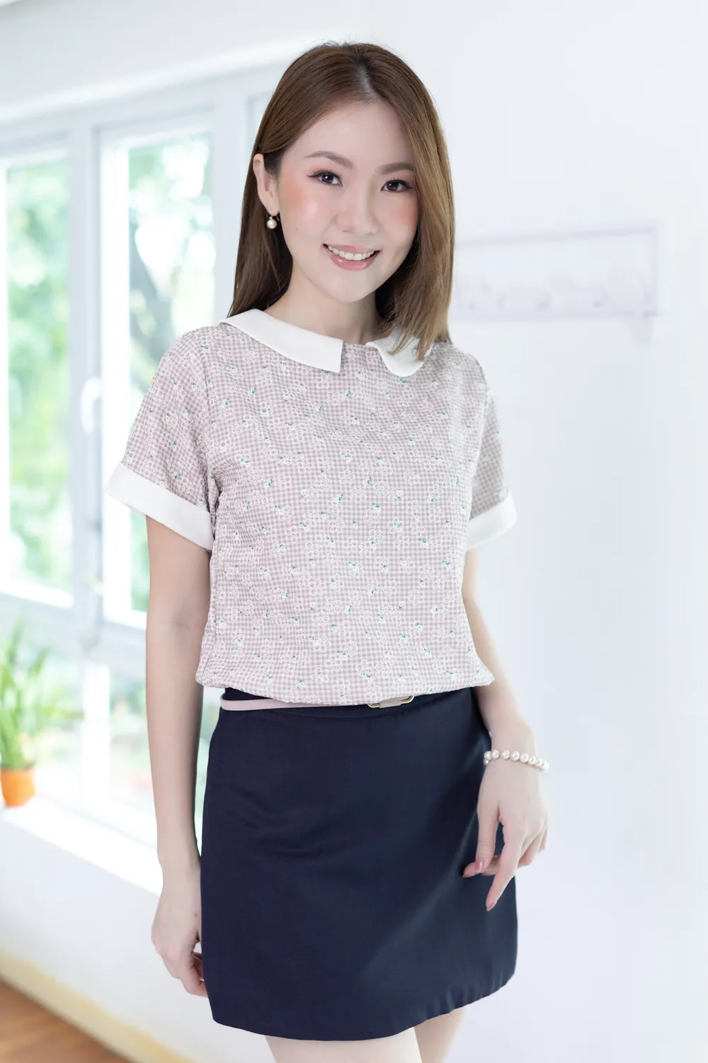 MT3519 Sakura Short Sleeve Collar Blouse – Lilac Gingham