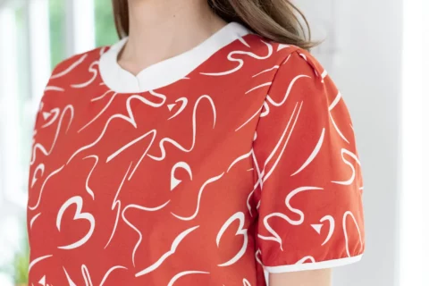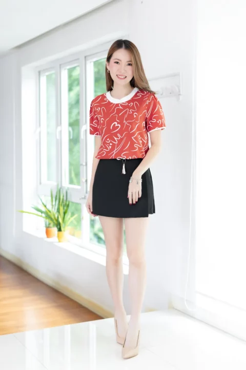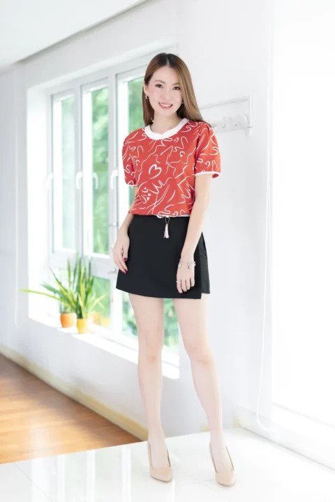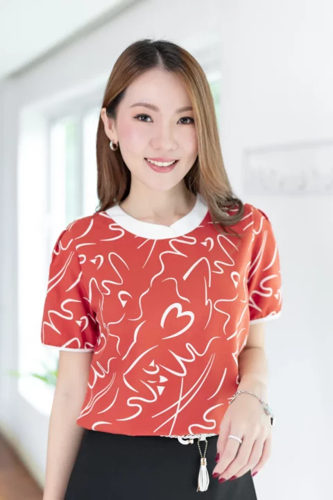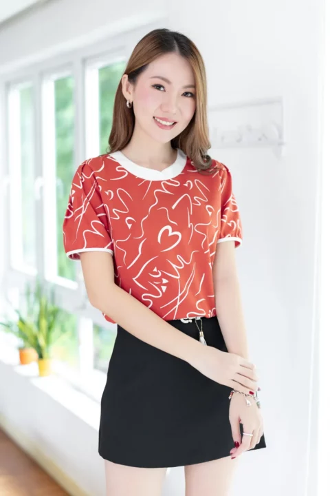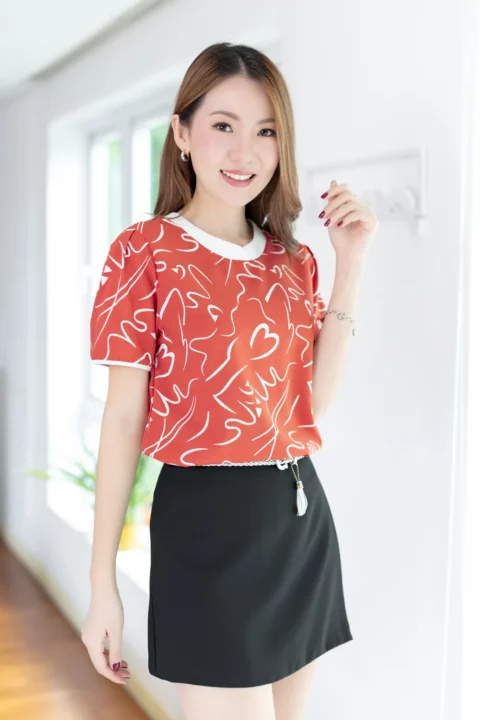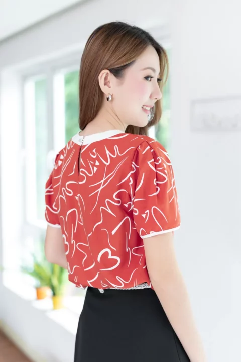 MT3721 Overlap Collar Graphic Blouse – Burnt Orange