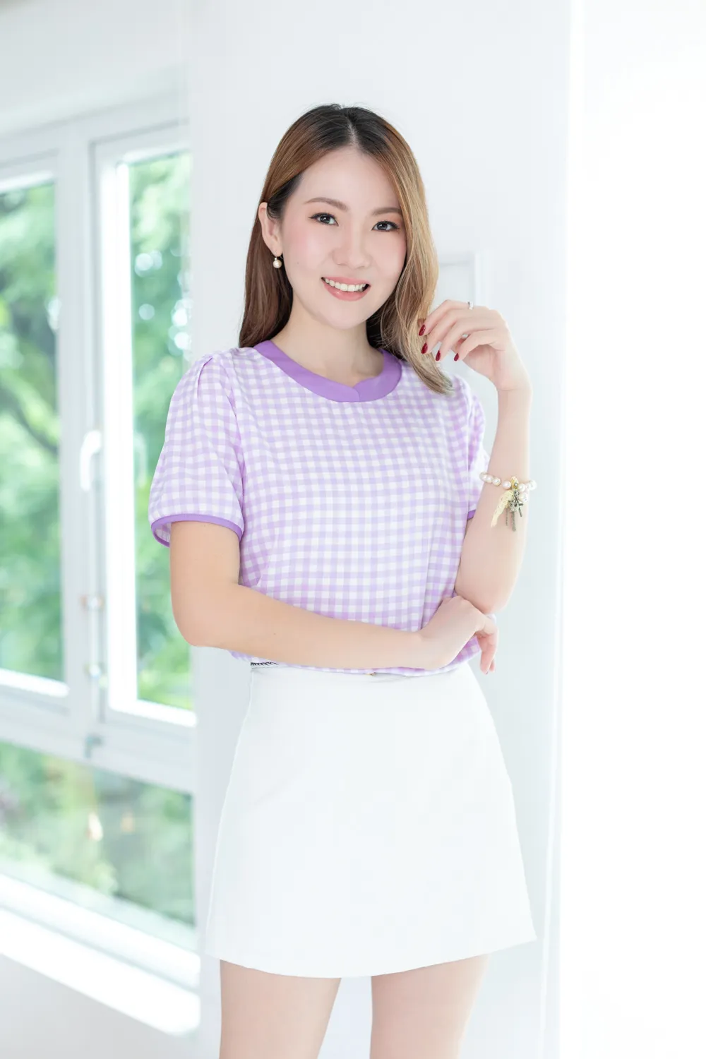 เสื้อคอกลม ผ้าลายตารางแต่งขอบคอสีพื้น วางขอบซ้อนกันเก๋ๆ สวยเรียบง่ายแบบมีเอกลักษณ์ แขนสั้นกุ๊นขอบแขน ด้านหลังผ่าหยดน้ำสวมใส่ง่าย ผ้าไหมอิตาลีเนียนๆ ดูแลง่ายรีดง่ายแห้งไวเหมือนเดิมค่ะ