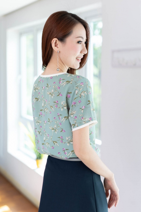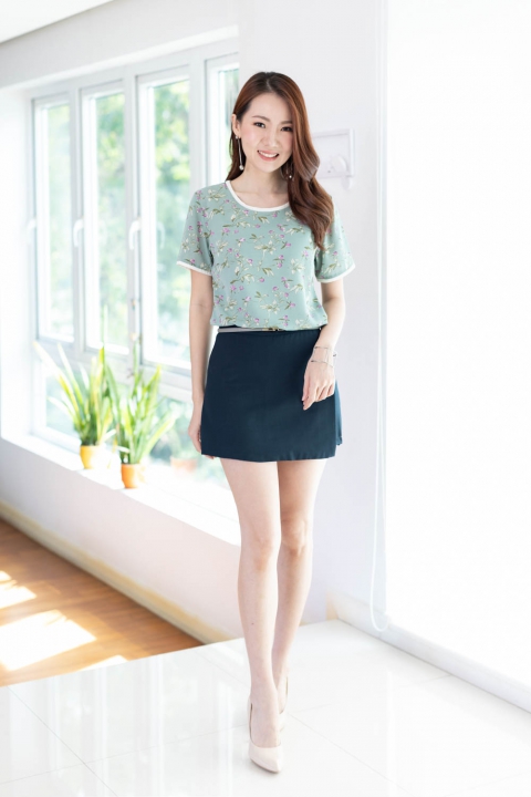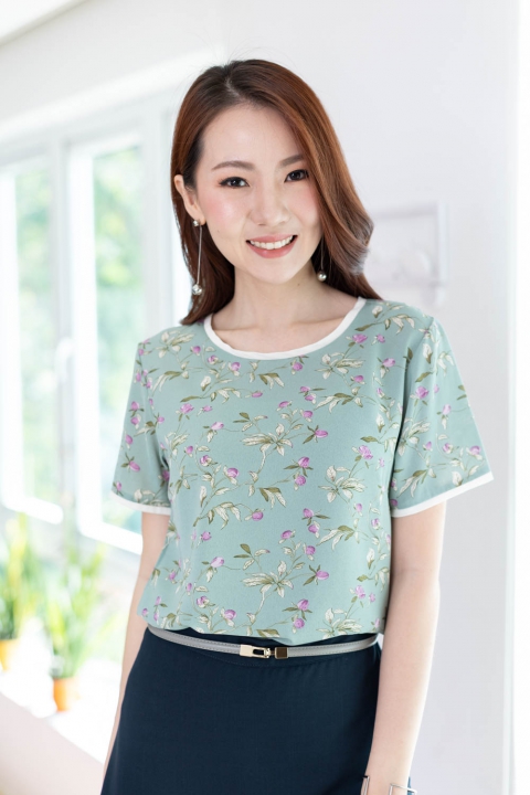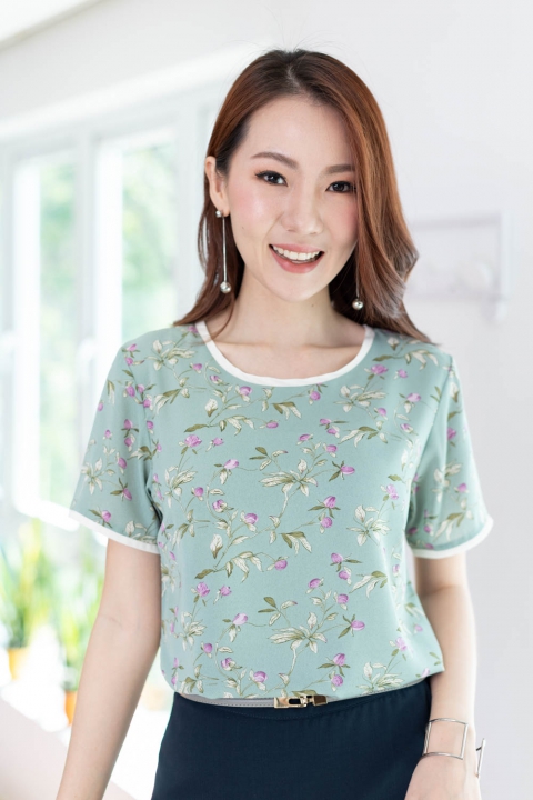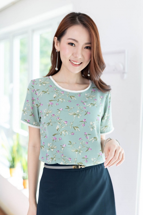 ขอแนะนำเสื้อแบบสบายๆ สุภาพ แบบแอบ Relax ทรงคอกลม ใช้ผ้าพิมพ์ลายเนื้อดี ลื่นเย็น ผ้าทิ้งตัวนิดๆ แต่งขอบคอและขอบแขนด้วยผ้าสีพื้นขาว ชิลแบบเรียบร้อย ใส่กับกางเกงผ้า หรือกระโปรงยังไปทำงานได้ หรือจะคู่เดนิมก็รอดนะ!