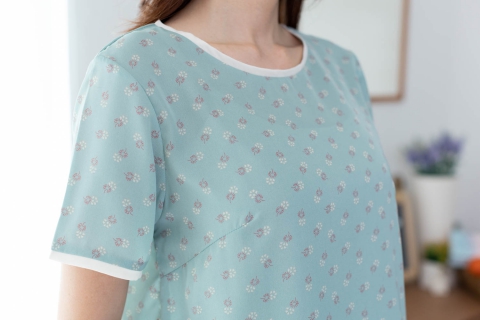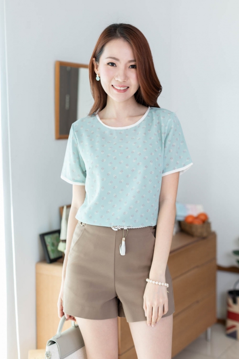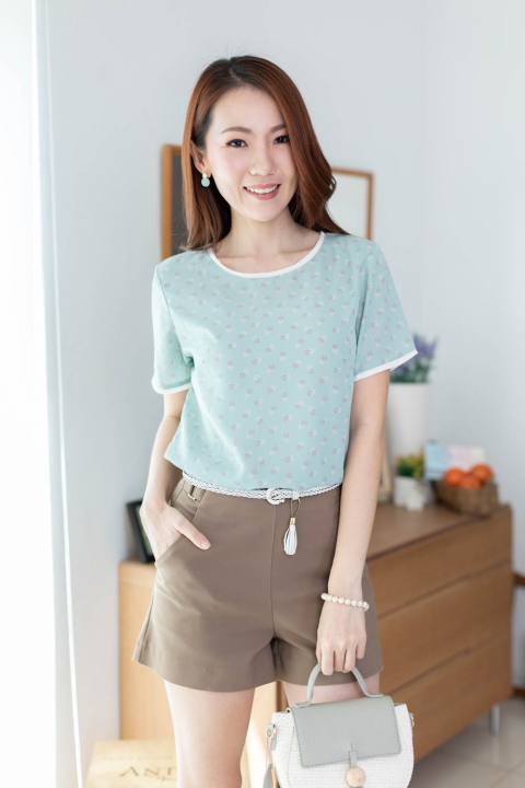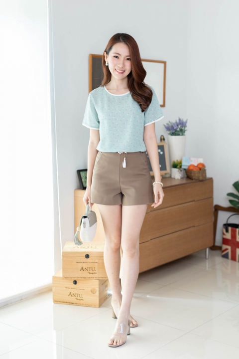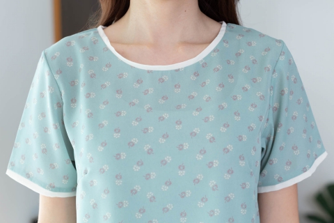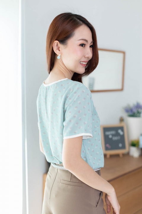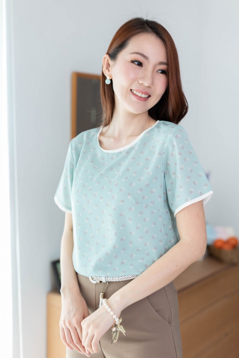 ขอแนะนำเสื้อแบบสบายๆ สุภาพ แบบแอบ Relax ทรงคอกลม ใช้ผ้าพิมพ์ลายเนื้อดี ลื่นเย็น ผ้าทิ้งตัวนิดๆ แต่งขอบคอและขอบแขนด้วยผ้าสีพื้นขาว ชิลแบบเรียบร้อย ใส่กับกางเกงผ้า หรือกระโปรงยังไปทำงานได้ หรือจะคู่เดนิมก็รอดนะ!