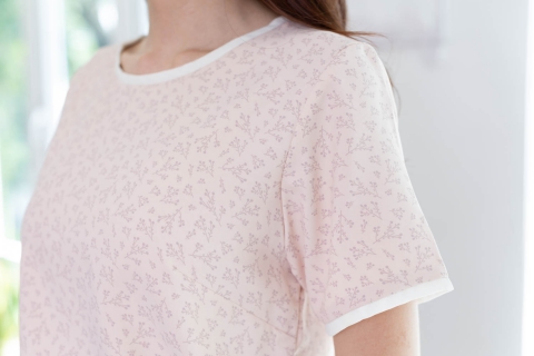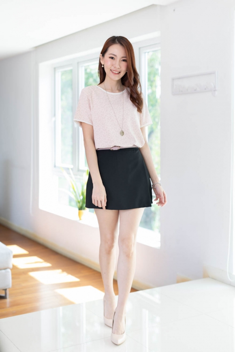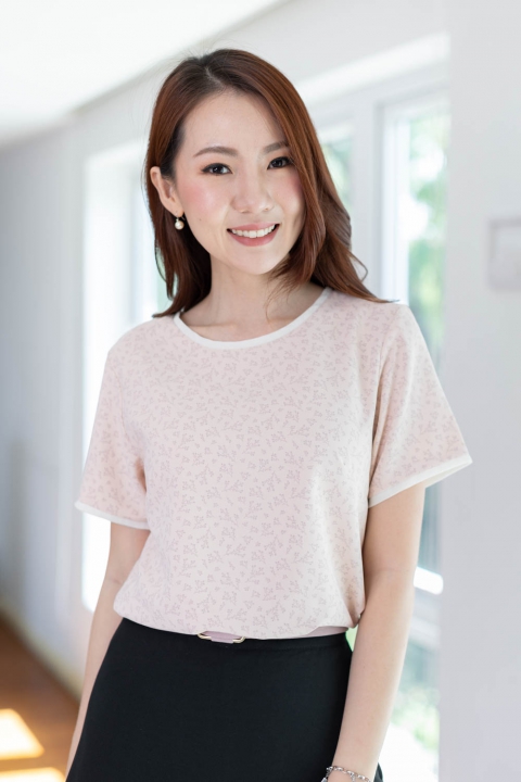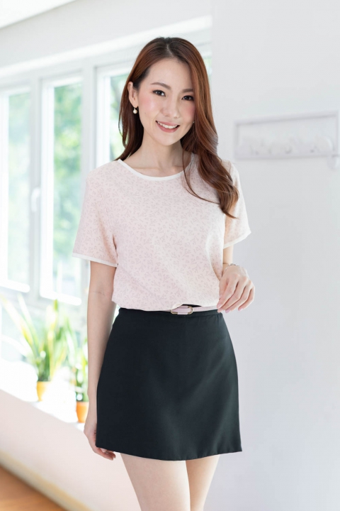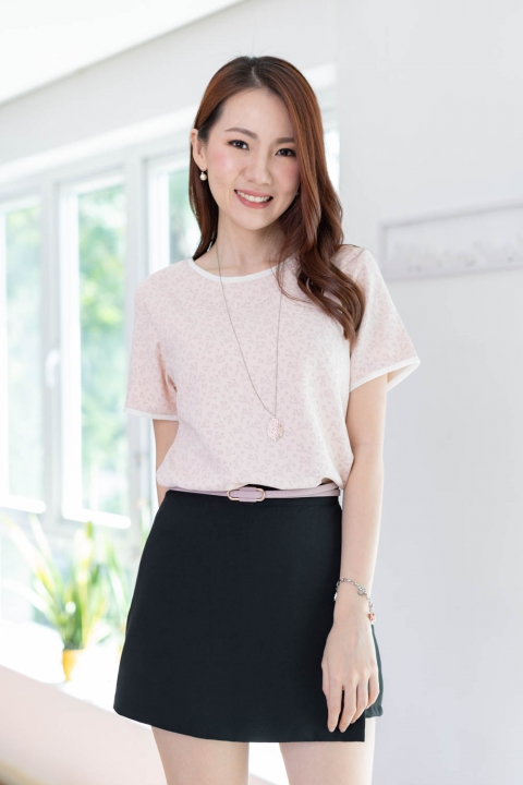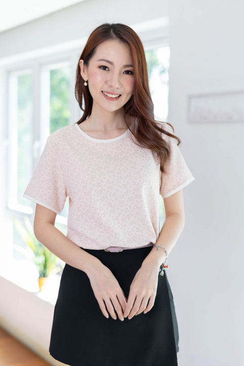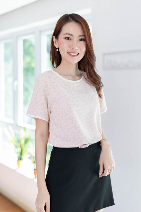 ขอแนะนำเสื้อแบบสบายๆ สุภาพ แบบแอบ Relax ทรงคอกลม ใช้ผ้าพิมพ์ลายดอกไม้จิ๋วๆ เนื้อดีลื่นเย็น ผ้าทิ้งตัวนิดๆ แต่งขอบคอและขอบแขนด้วยผ้าสีพื้นขาว ชิลแบบเรียบร้อย ใส่กับกางเกงผ้า หรือกระโปรงยังไปทำงานได้ หรือจะคู่เดนิมก็รอดนะ!