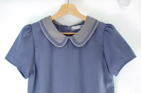 เสื้อปกบัว แต่งขอบปกด้วยกุ๊นยาว น่ารักแบบโดดเด้ง แขนสั้น ทรงใส่ง่ายเหมือนเดิม ผ่าหยดน้ำติดกระดุมคอด้านหลัง ใช้ผ้าโฟร์เวย์เนื้อนิ่ม สวยด้วย แมทช์ก็ง่าย ใส่ได้ยาวๆ