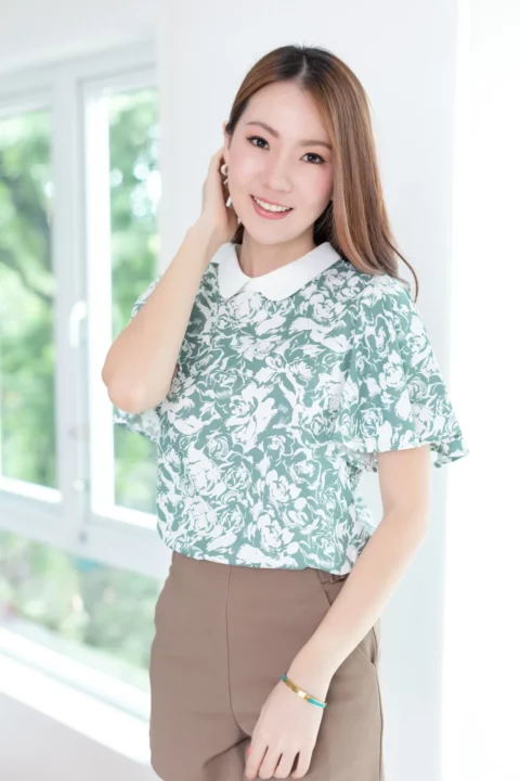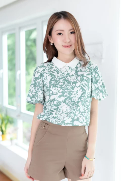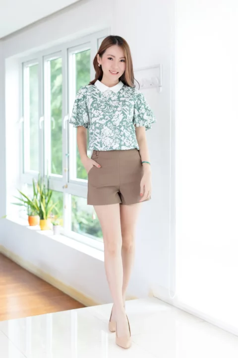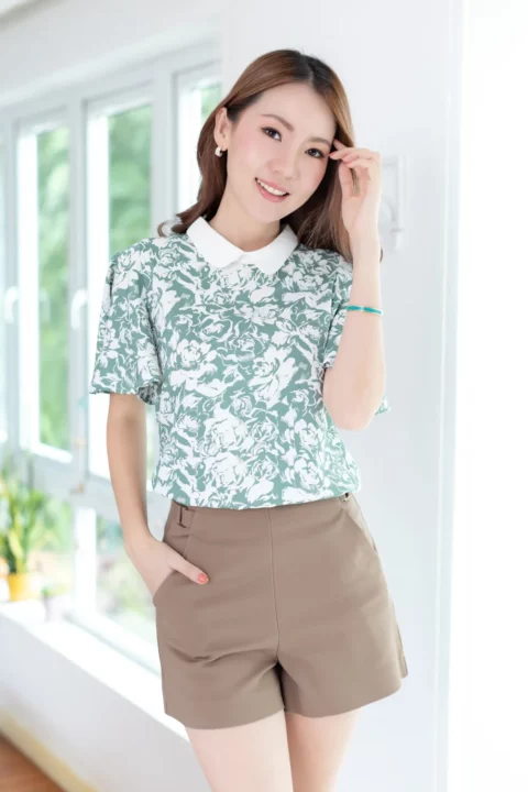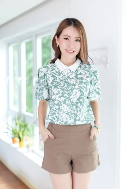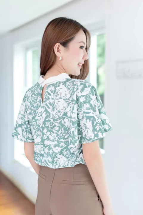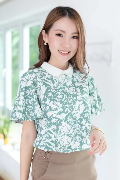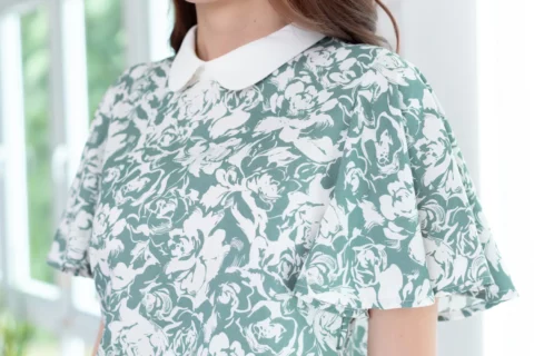 ขอมาแบบแขนผีเสื้อ นารินาริจัดให้ เสื้อคอปกบัวเล็กน่าเอ็นดู ทรงตั้งปิดคอเรียบร้อย ตัวปกเป็นสีพื้นผ่าหยดน้ำหลัง ส่วนของเสื้อใช้ผ้าลายกราฟิก แขนเสื้อทิ้งตัวพลิ้วสวยงามยาวคลุมต้นแขน ก็จะดูเก๋ๆแอบเท่ห์ ตัวเสื้อทำทรงคอดใต้อก 1 นิ้ว รุ่นนี้จะพอดีตัวขึ้นนิดนึงค่ะ