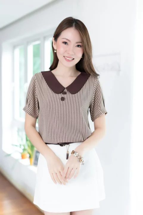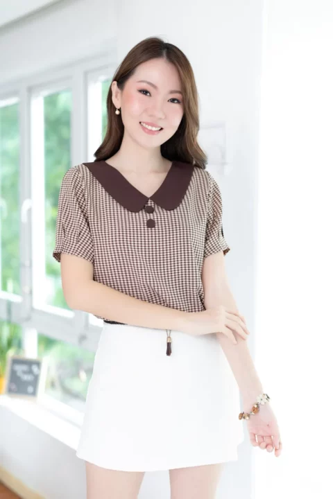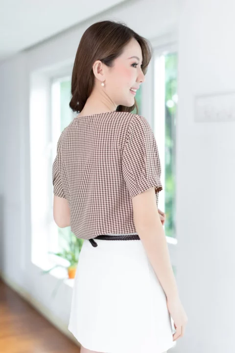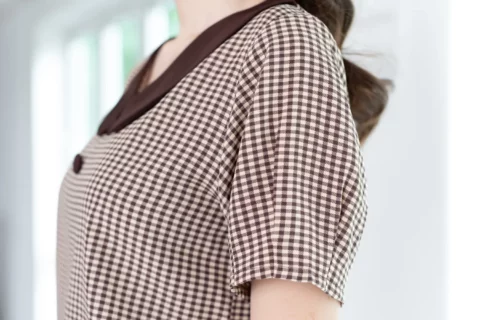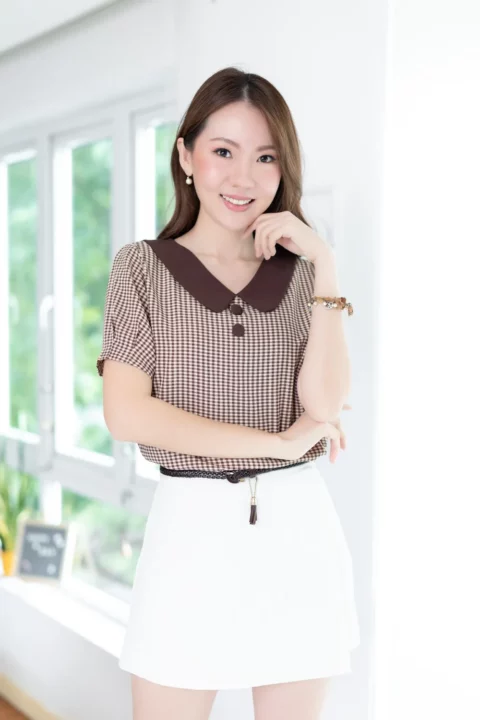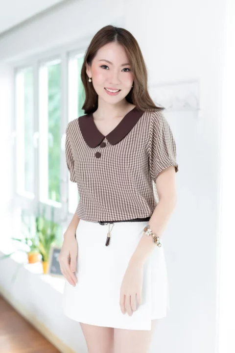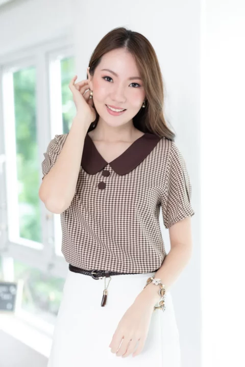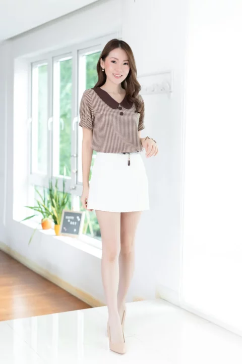 ขอแนะนำเสื้อสวยสบายแบบใหม่ คอวี ปกบัวแบบแบนทรงโค้งดูน่ารัก แต่งกระดุมหลอกคู่ เสื้อเป็นแบบสวม แขนสั้นจับพลีทปลายแขน ใช้ผ้าไหมอิตาลีทอเรียบ เนื้อจะเนียนใส่สบายผิว *รุ่นนี้คอดใต้อกทรงแคบกว่าปกติ
