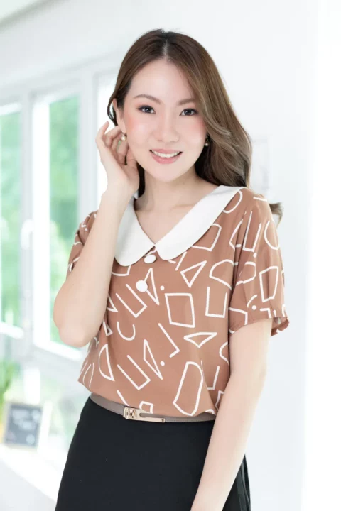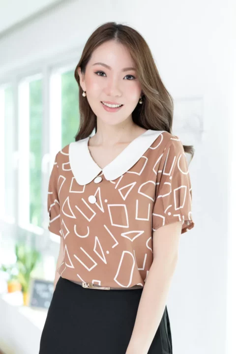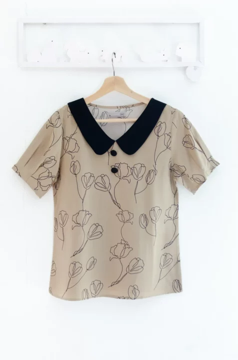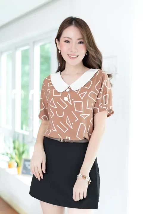 MT4428 Peter Pan Collar Button Blouse – Latte