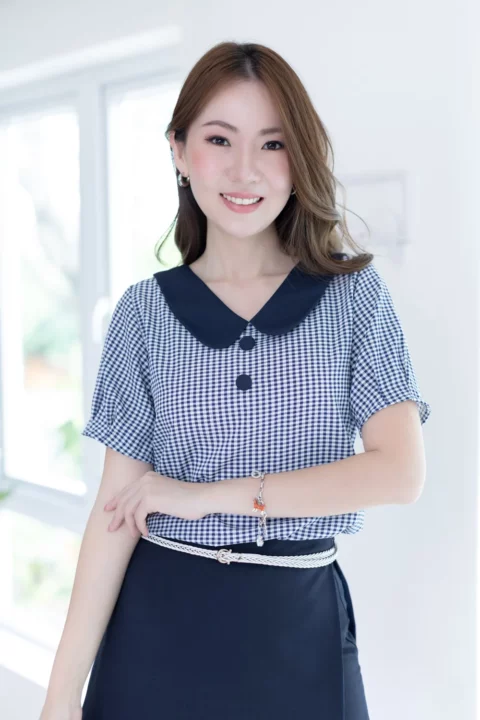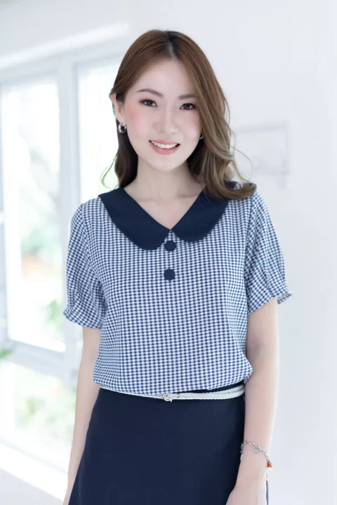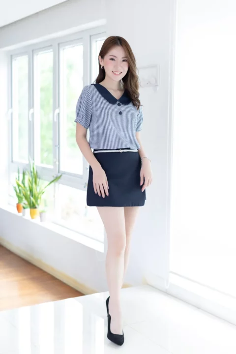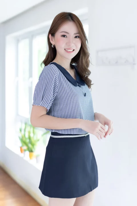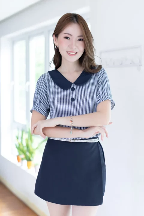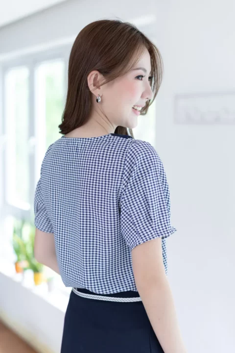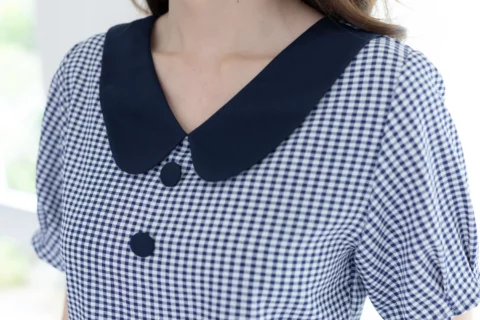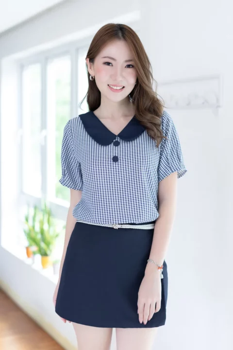 MT4428 Peter Pan Collar Button Blouse – Blue Gingham