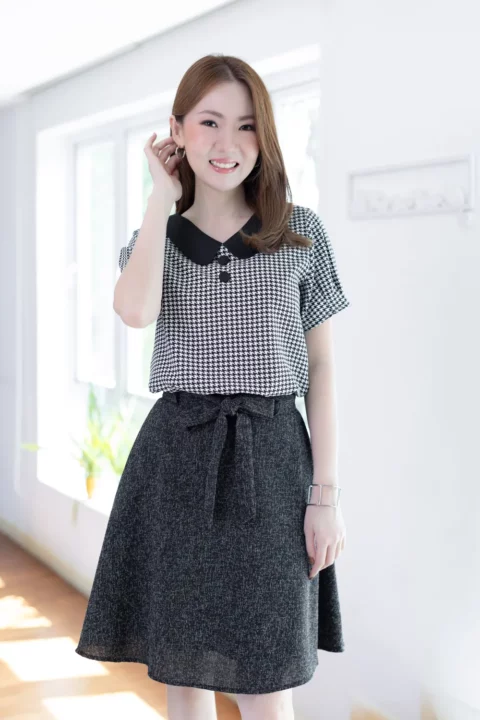 Size 40 – รอบอก 39″-40”, คอกว้าง 9”, ไหล่ 15”, แขนยาว 10”, รอบวงแขน 20”, รอบปลายแขน 14” , ยาว 23.5”, รอบชายเสื้อ 43”