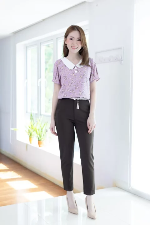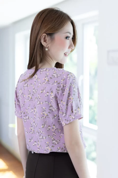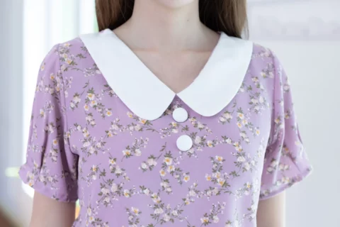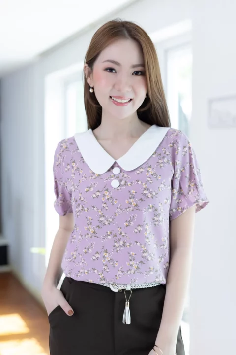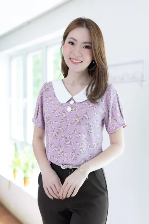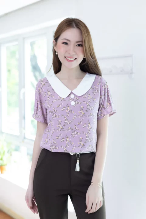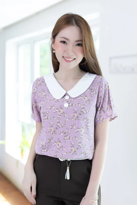 MT4428 Peter Pan Collar Button Floral Blouse – Purple