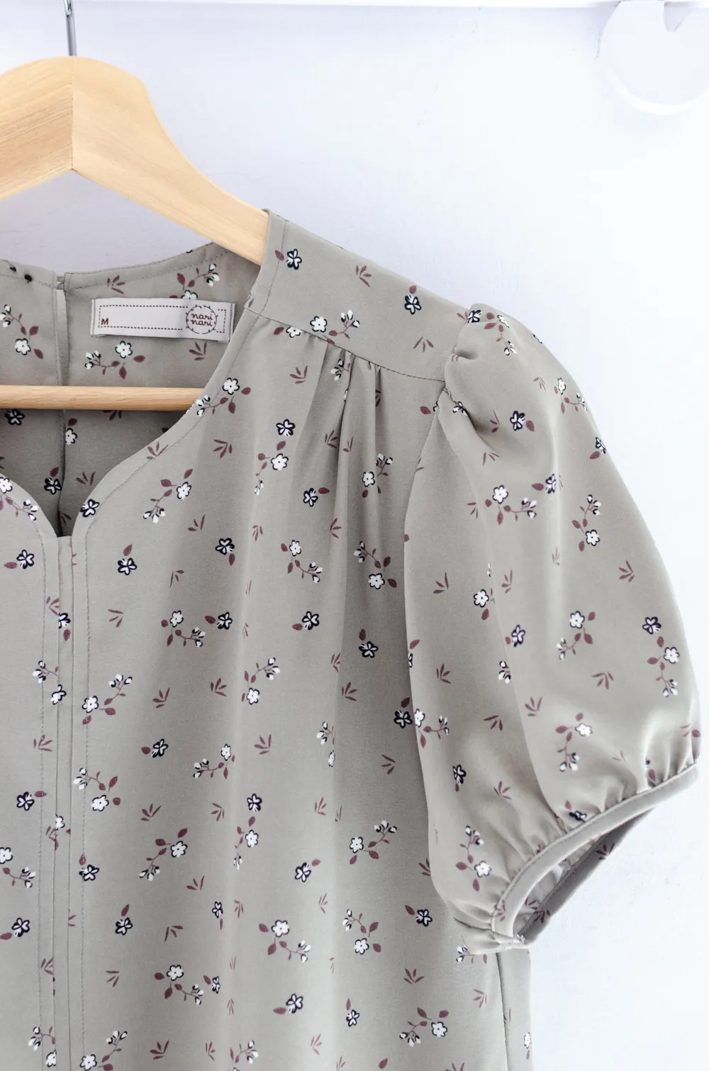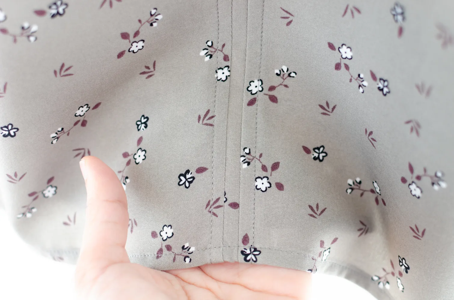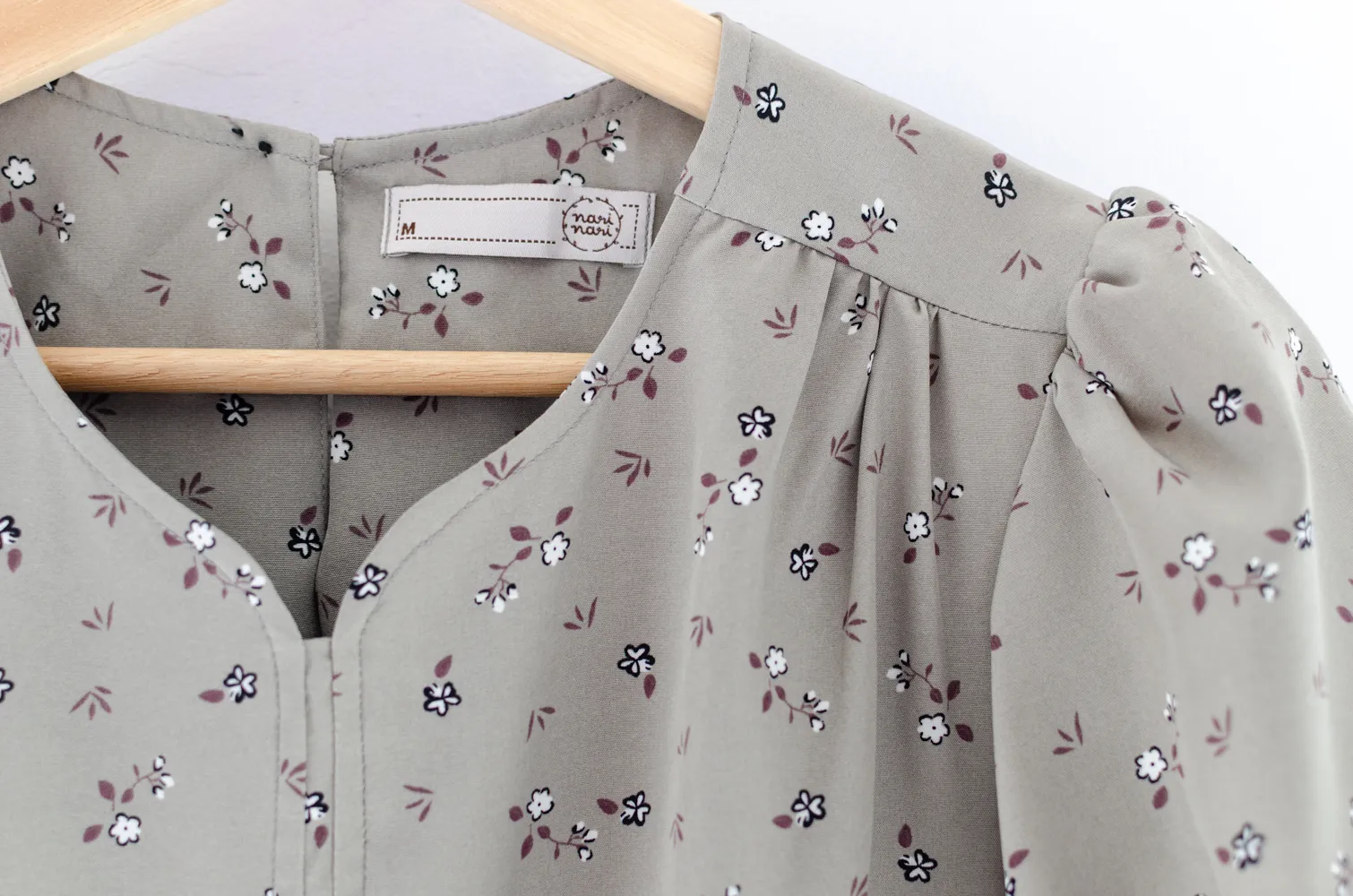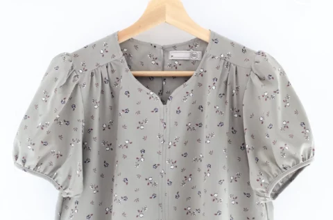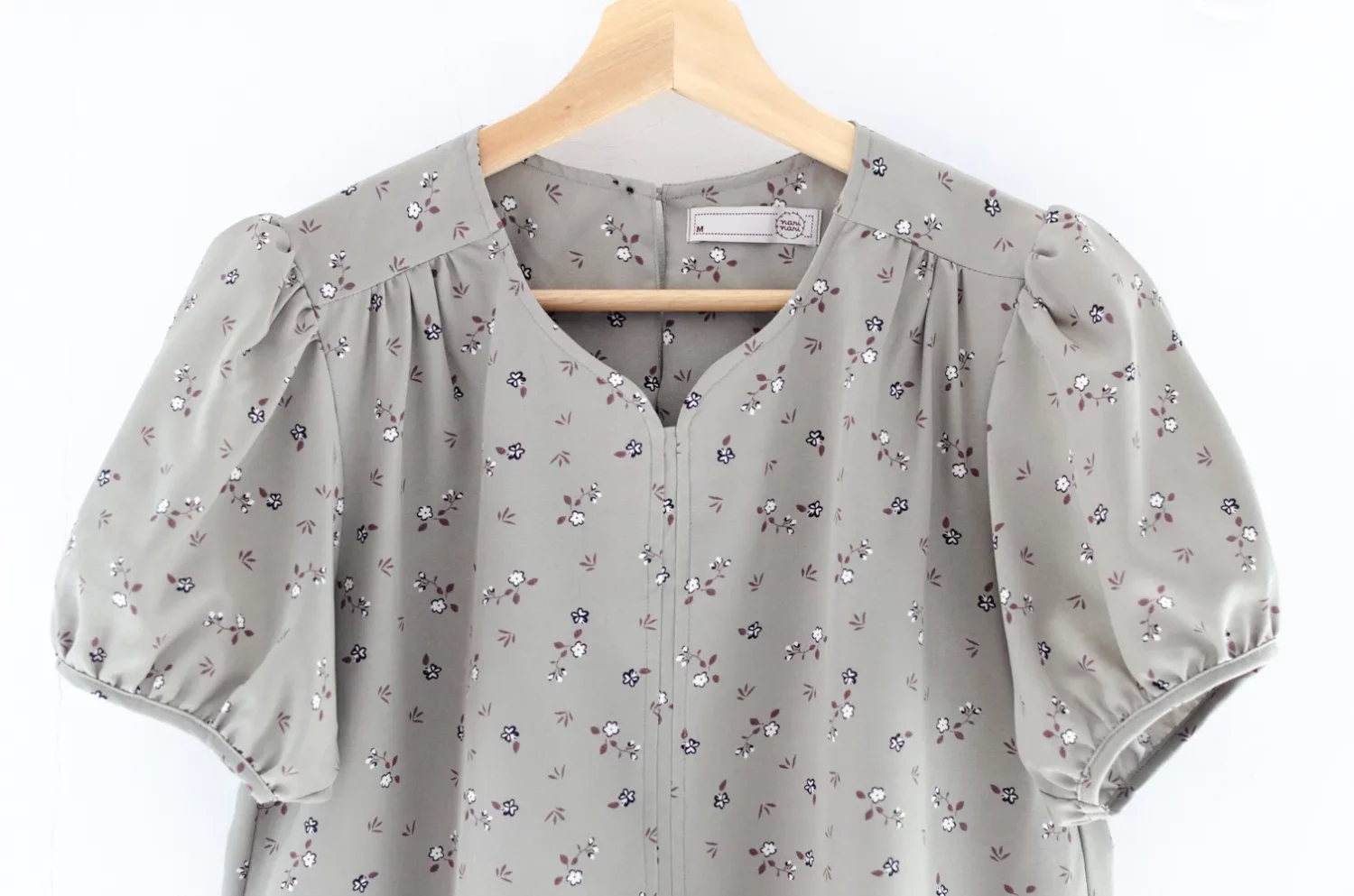 เสื้อสีเรียบๆแต่แอบเก๋ คอกลมแต่งบากตรงกลางแบบปาดโค้งต่อเป็นคัตติ้งยาวด้านหน้า ช่วงไหล่แต่งจีบรูด แขนตุ๊กตาสั้น ใช้ผ้าไหมอิตาลี เนื้อผ้าสัมผัสดีเรียบเนียน ทรงใส่ได้นานๆเลย