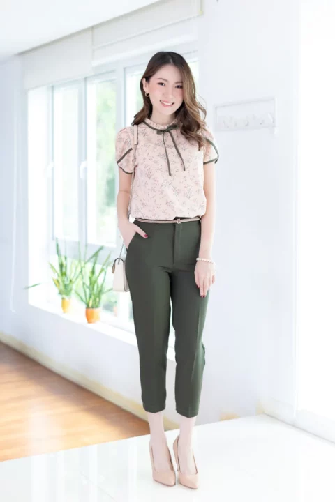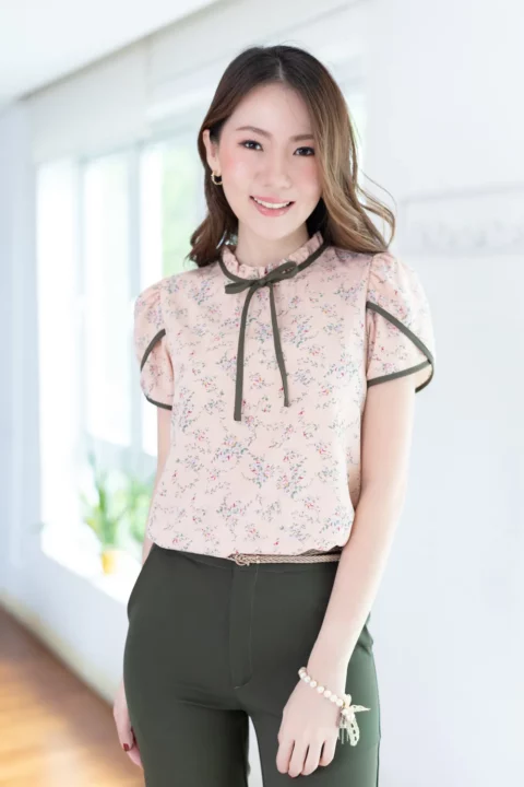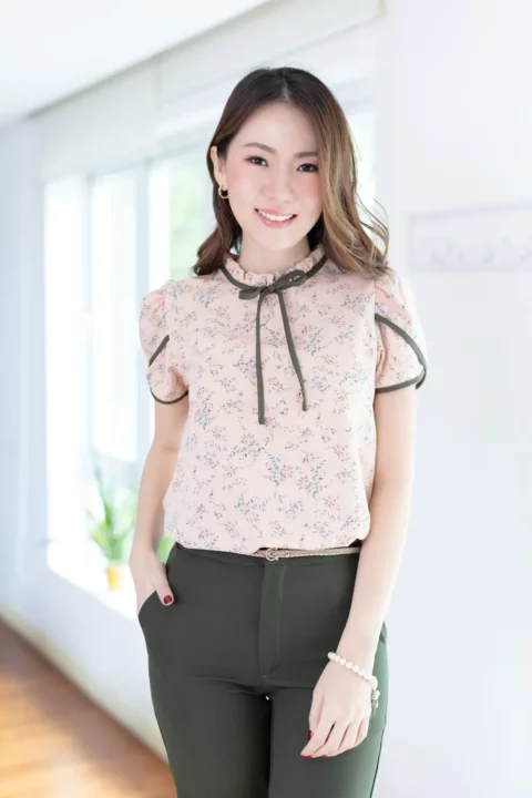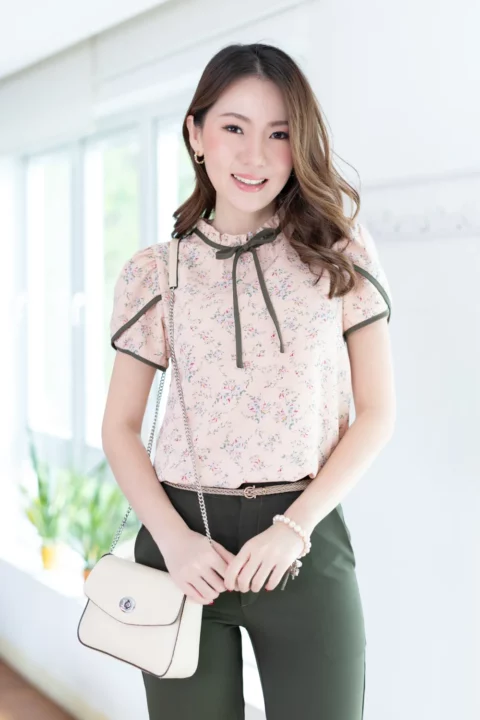 ช่วงนี้อยากเพิ่มเติมความโรแมนติกให้กับการแต่งตัว 💐 งานจีบคอคืออันดับ 1 เลย จีบแบบไม่สูงมาก คอปิดแต่งสายโบว์ยาว แขนสั้นซ้อนทรงกลีบดอกไม้ ใช้ผ้าลายดอก รวบรวมดีเทลเฟมินินเข้าไว้ด้วยกัน ถ้าต้องเพิ่มความทางการ แนะนำจับคู่กระโปรงทรงดินสอ ส่วนลุคลำลองขึ้นเล็กน้อย จับคู่กางเกงผ้าหรือกระโปรงทรงพลิ้วก็จะสวยมากๆเลย