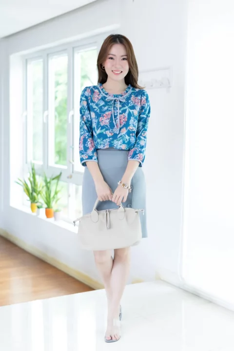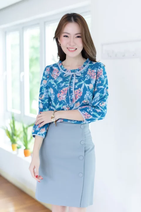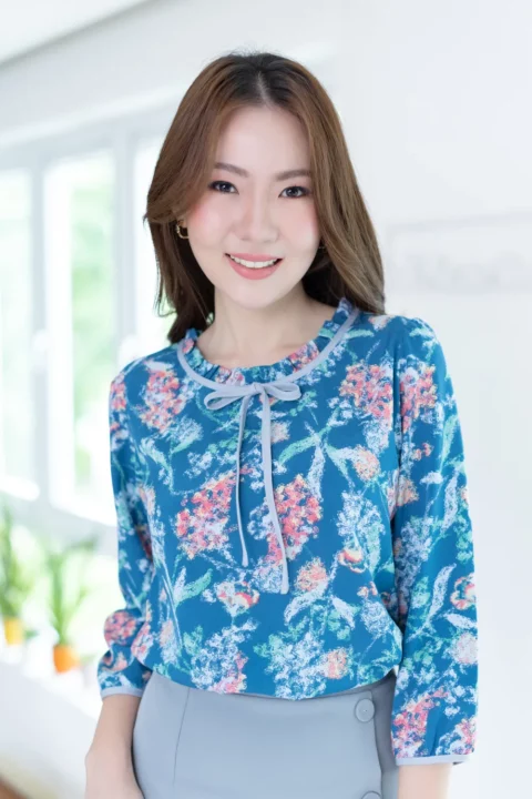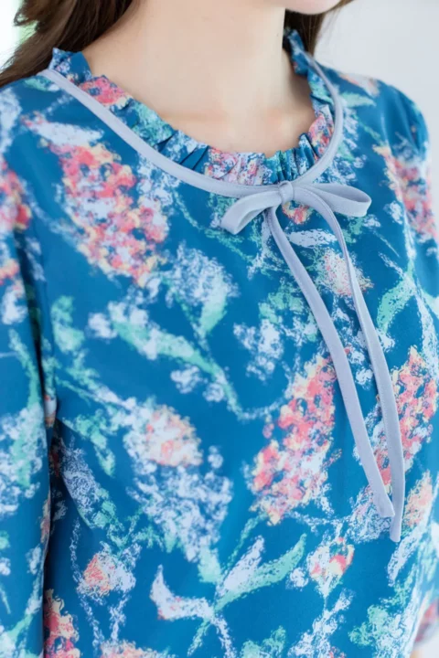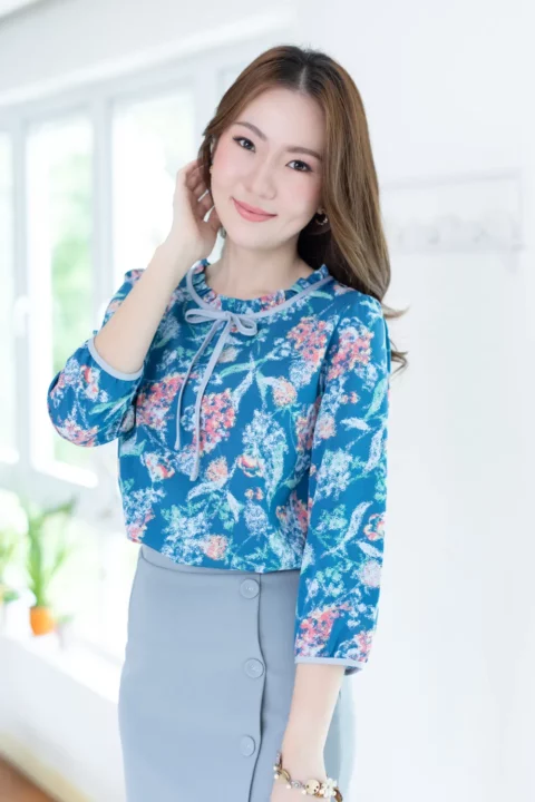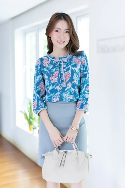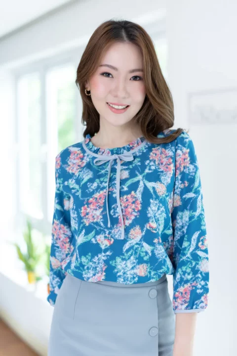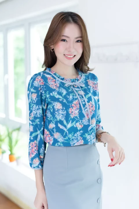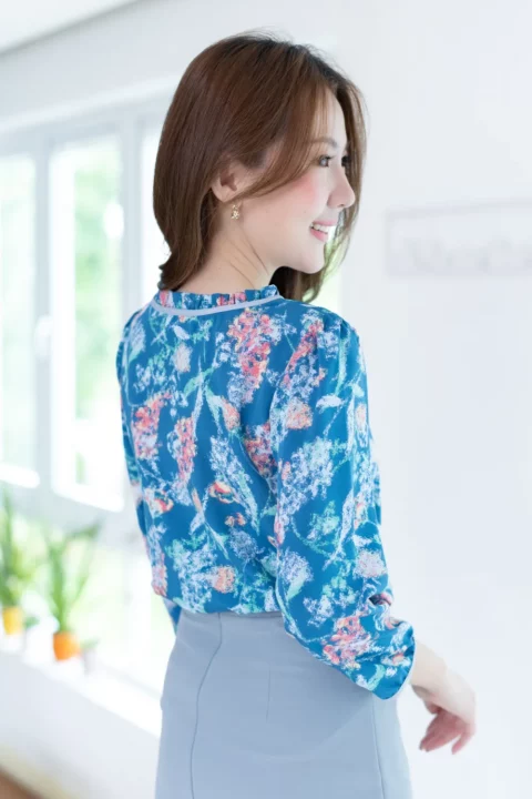 MT4834 Ruff Collar Floral Blouse – Ocean Green