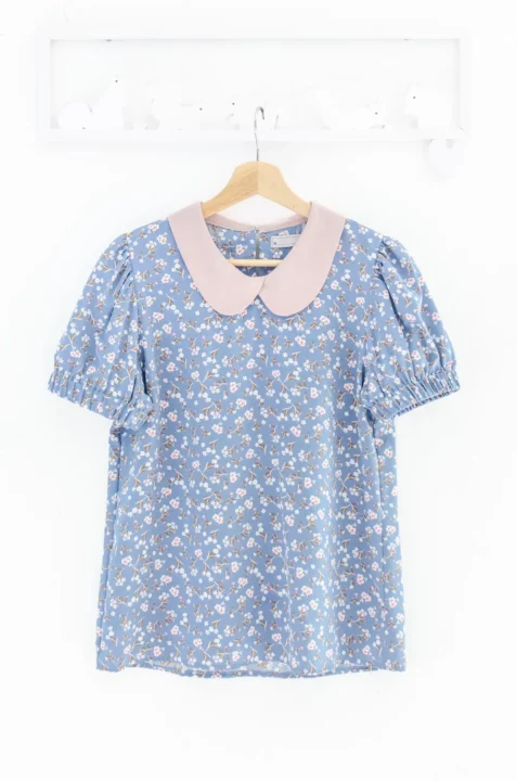 เสื้อปกบัวที่แอบเก๋ด้วยดีเทลวางซ้อนกันด้านหน้า แขนตุ๊กตาแบบสั้นแต่งจั๊มยางยืดหนาปลายแขน ตัดเย็บด้วยผ้าไหมอิตาลีลายดอกไม้ เนื้อดีเนียนเรียบ ใส่สบายผิว ผ่าหยดน้ำหลังติดกระดุม