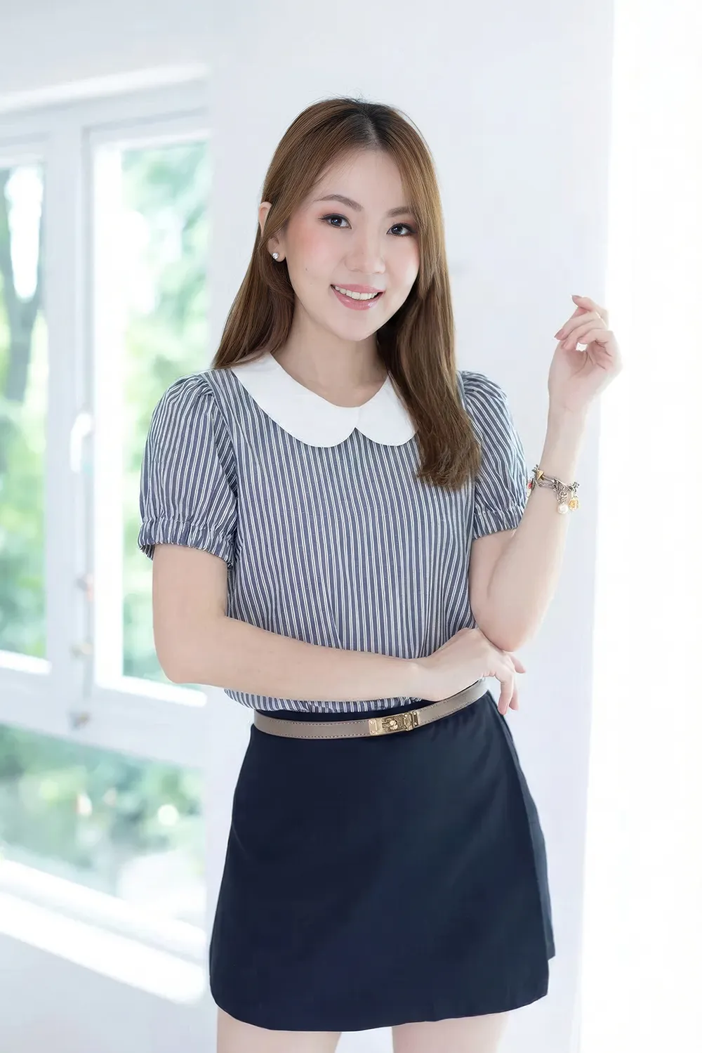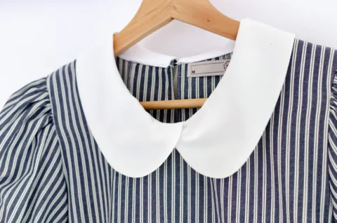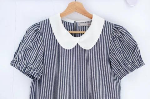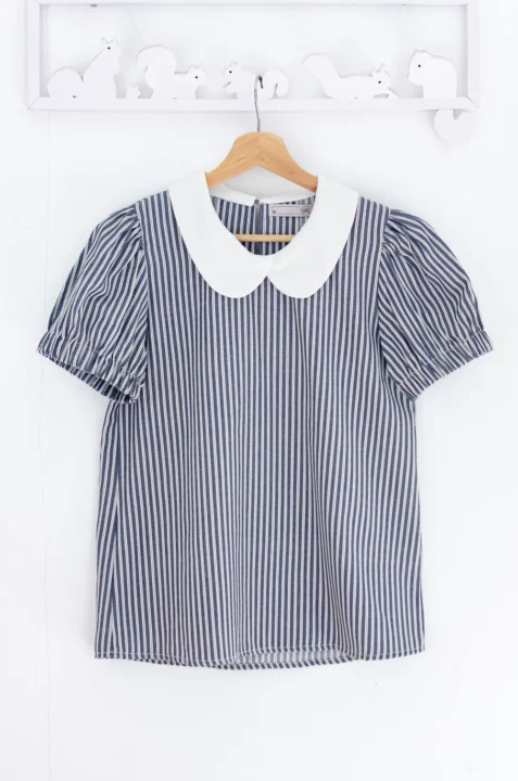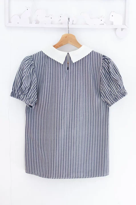 MT5040 Overlap Collar Stripe Blouse – Denim