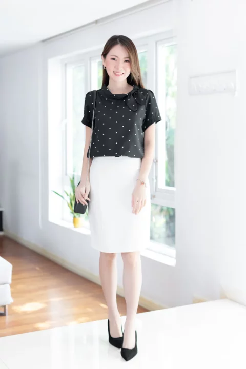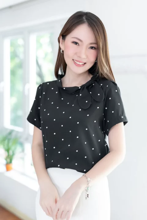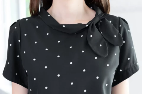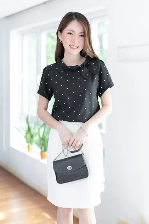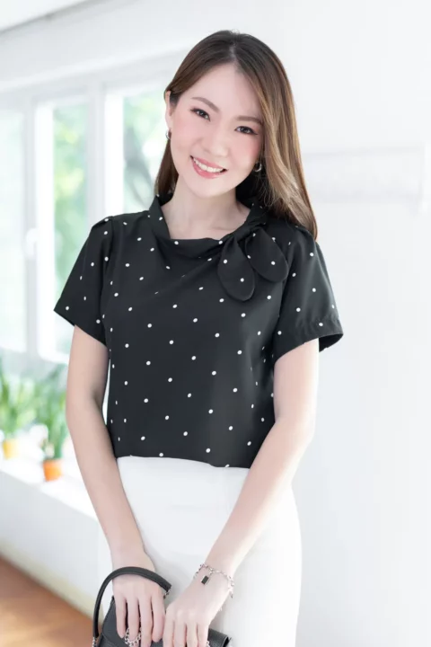 MT5139 Polka Dot Side Bow Blouse – Black