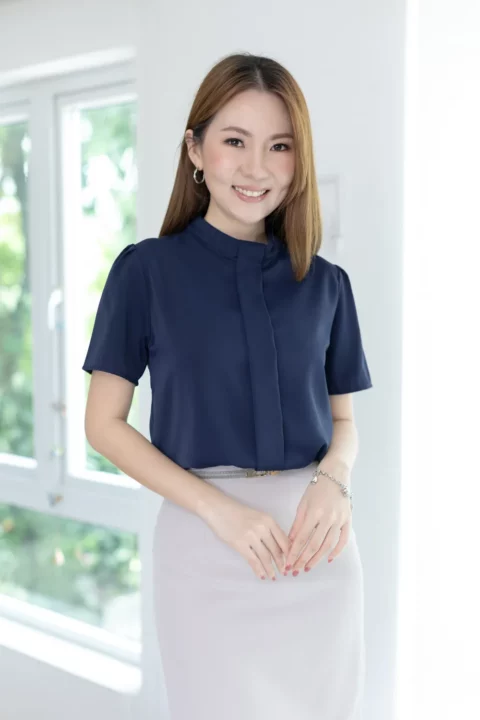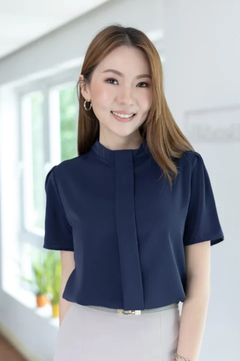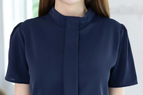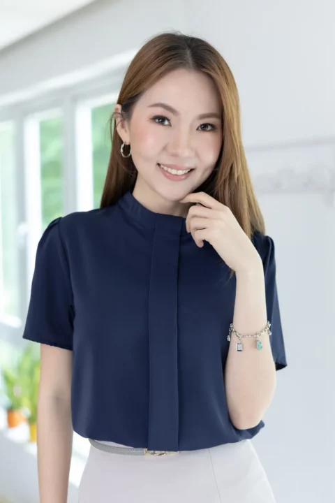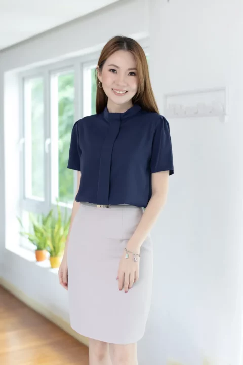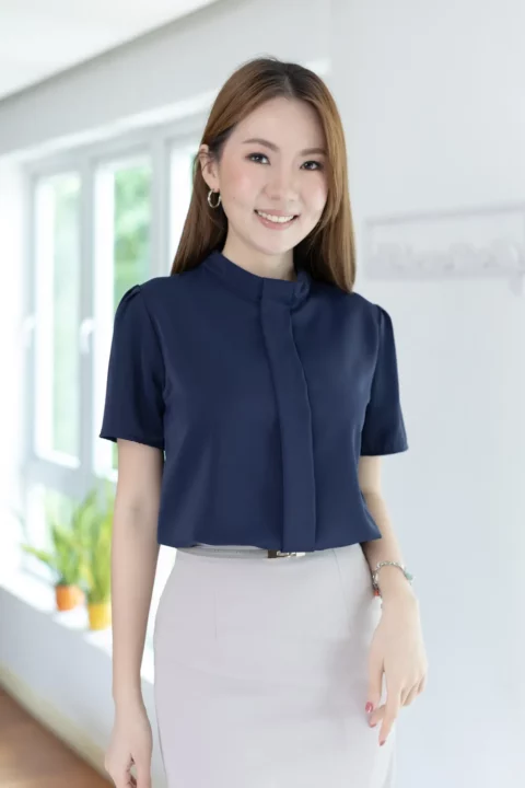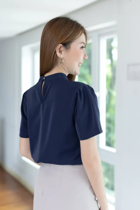 MT5239 Sophie Band Collar Placket Blouse – Navy Blue