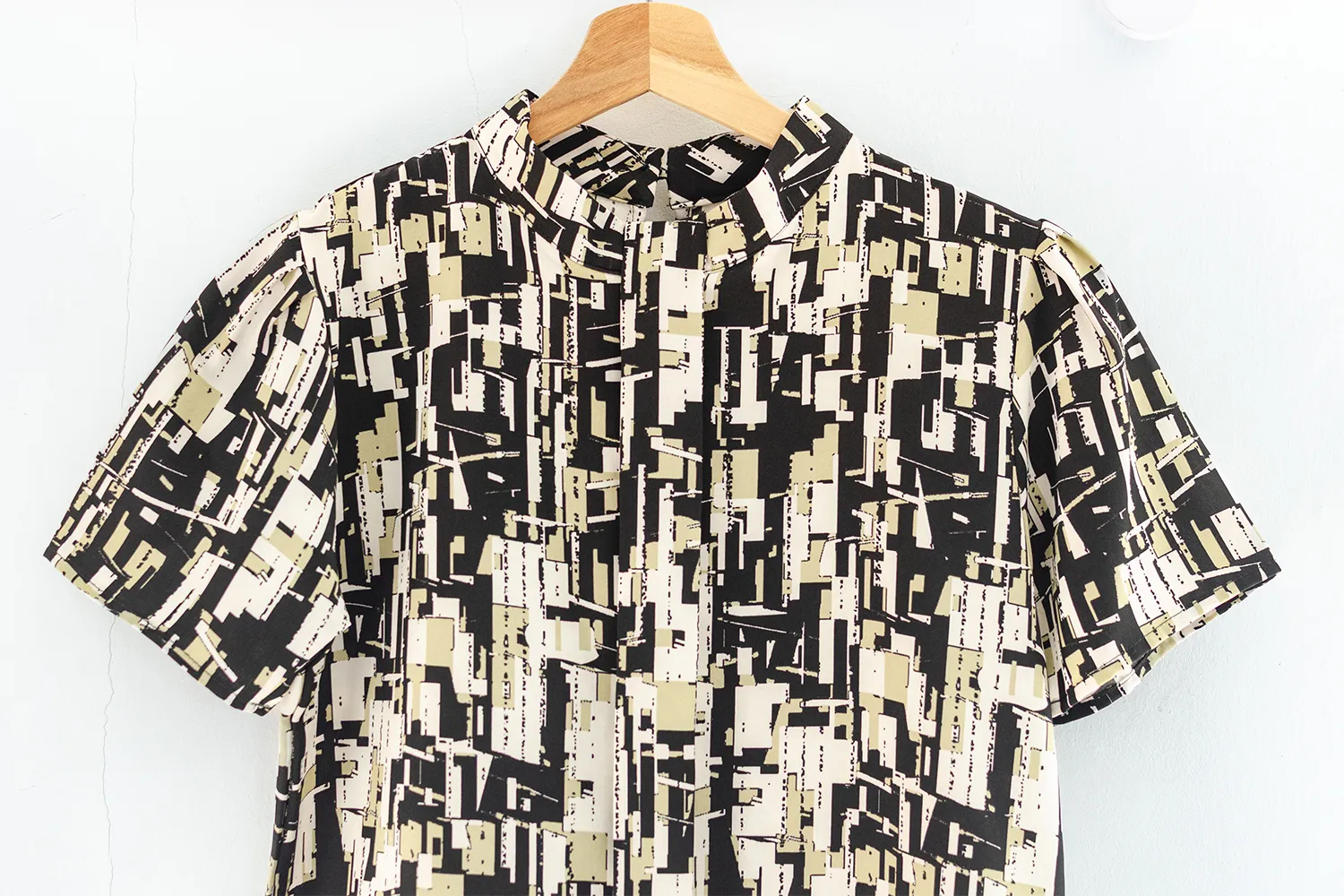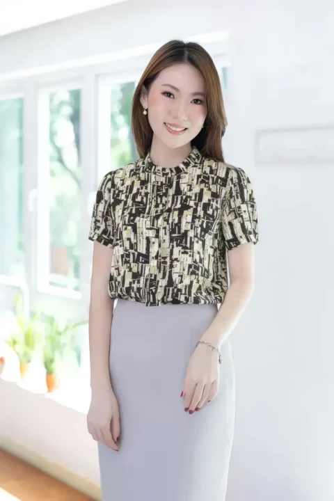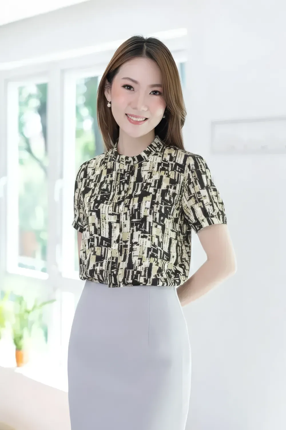 MT5239 Graphic Band Collar Placket Blouse – Black-Brown