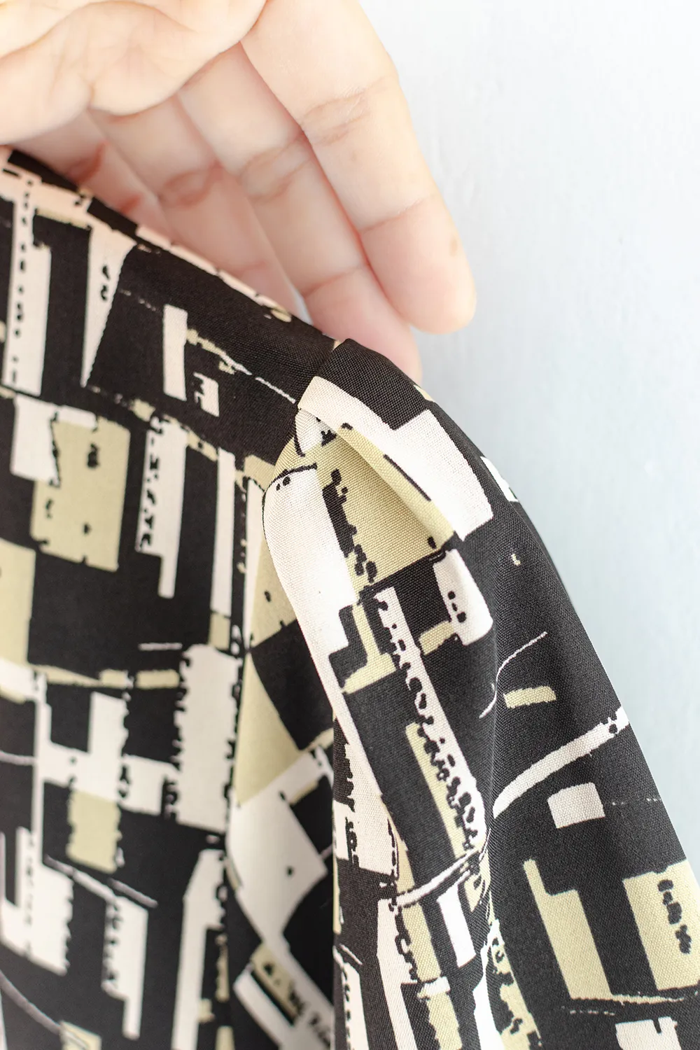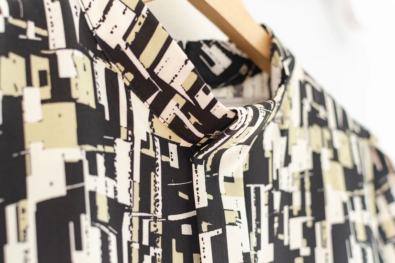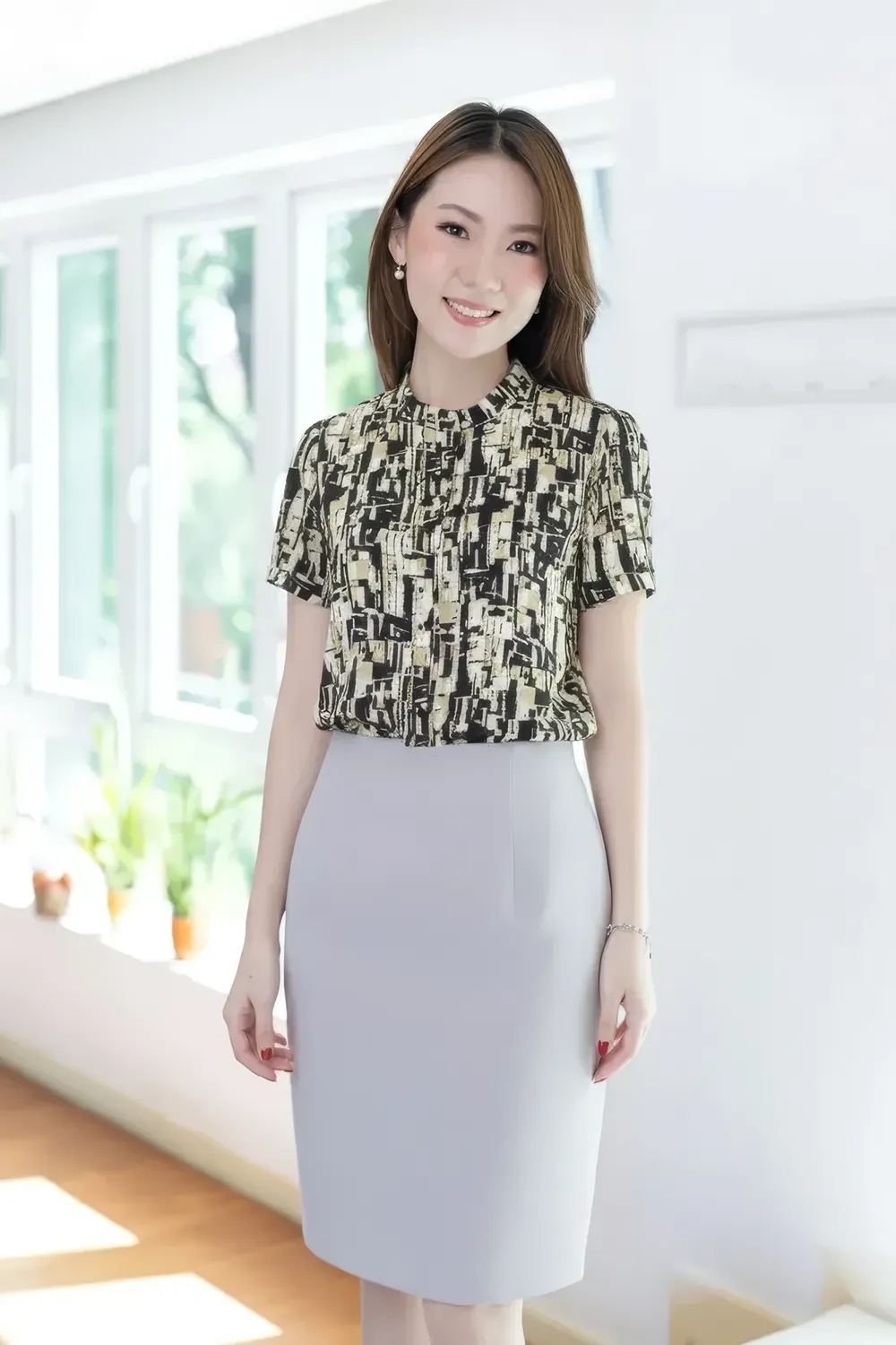 MT5239 Graphic Band Collar Placket Blouse – Black-Brown