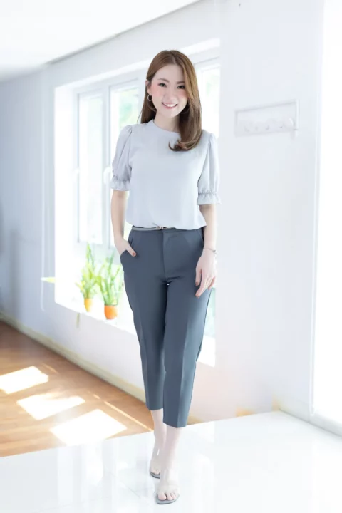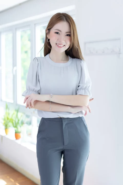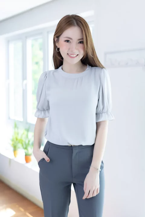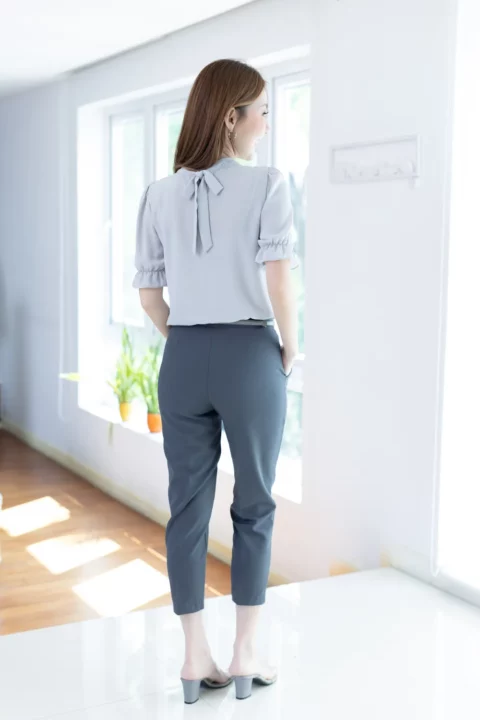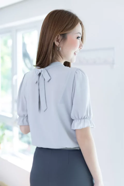 MT5433 Back Bow Chiffon Blouse – Grey