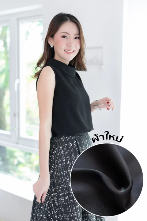 ปรับลุคให้สวยเด่นด้วยเสื้อแขนกุด ขอบคอสูงพับทบ ใช้ผ้าซาตินมีความทิ้งตัว เรียบลื่นเนียนไปกับผิว เนื้อผ้าแนะนำที่ไม่หนาไม่บางเกินไป แต่งตัวง่าย ควรมีไว้ครอบครอง ทรงนี้สวยงามเลอค่า Classic & Elegant✨