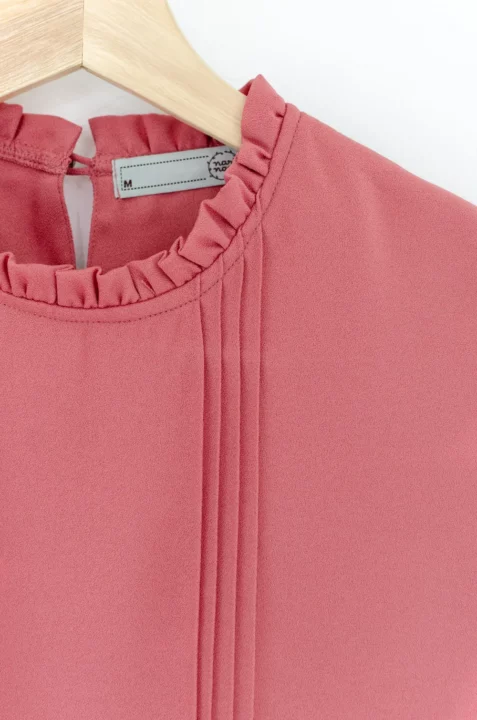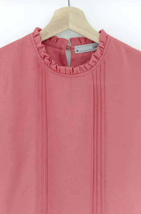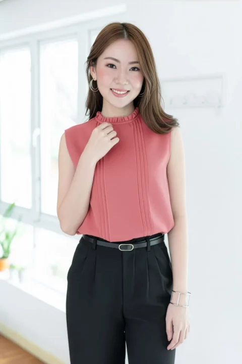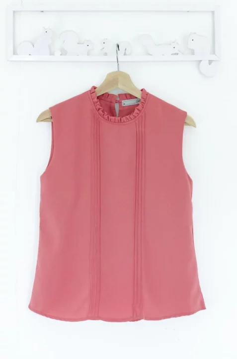 MT5700 Ruff Collar Pintuck Sleeveless Blouse – Coral