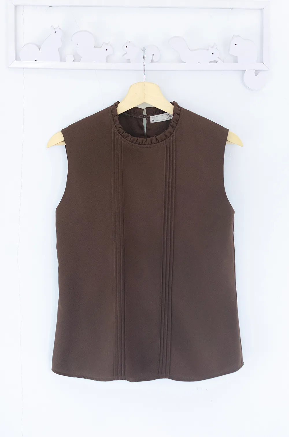 MT5700 Ruff Collar Pintuck Sleeveless Blouse – Choco Brown