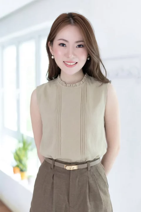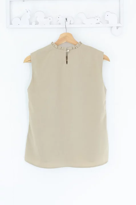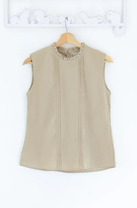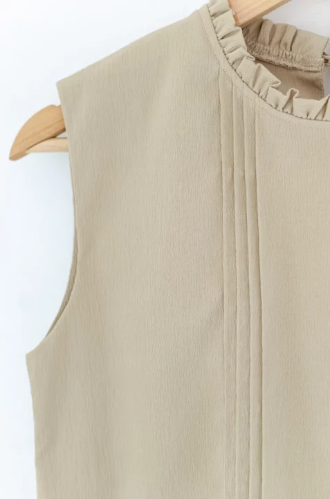 MT5700 Ruff Collar Pintuck Sleeveless Blouse – Crinkled Latte