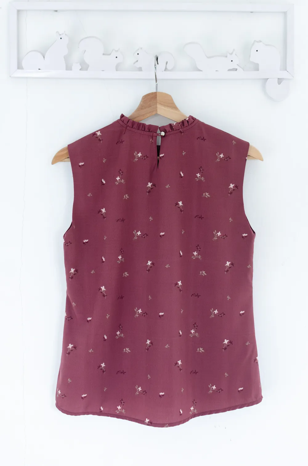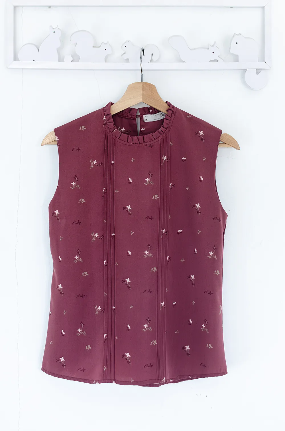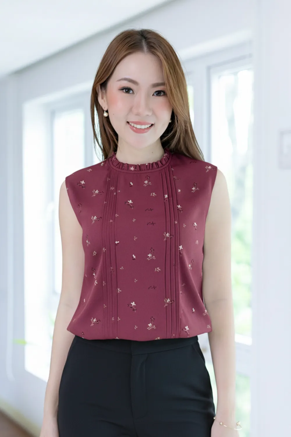 เสื้อแขนกุด คอกลมปิดแต่งจีบคอตั้งๆ ดีเทลเรียบเก๋ตีเกล็ดยาวด้านหน้า ผ่าหยดน้ำหลัง ตัดเย็บด้วยผ้าไหมอิตาลี เนื้อเนียน ไม่หนา พิมพ์ลายสวยหวานค่ะ