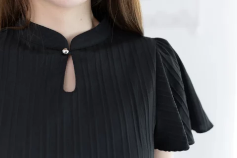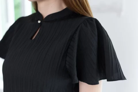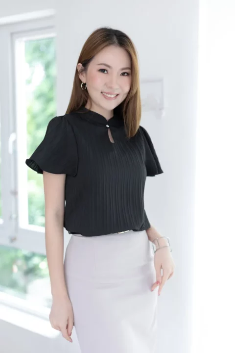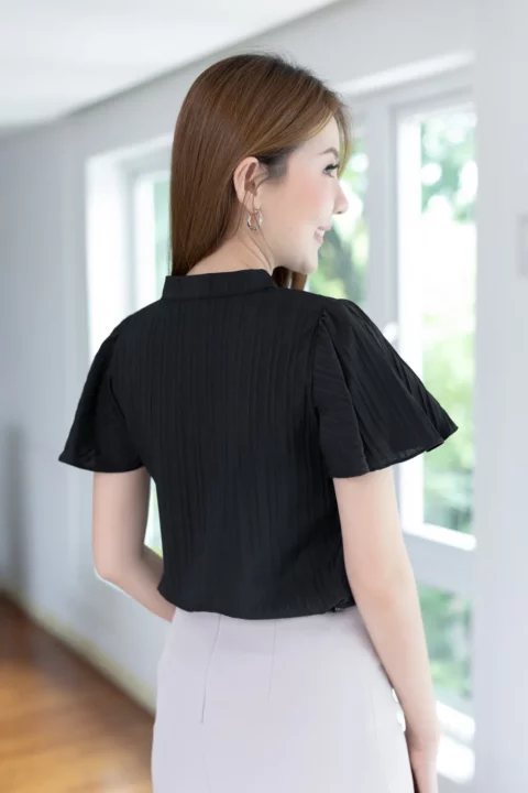 MT5941 Front Keyhole Butterfly Sleeve Blouse – Textured Black