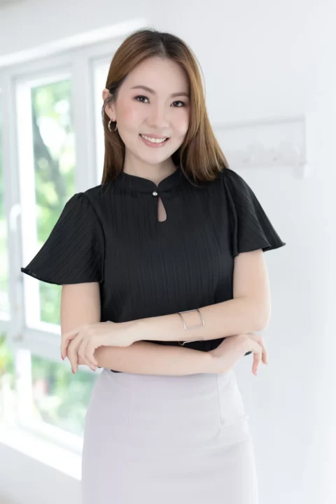 Size 38 – รอบอก 37”-38”, คอกว้าง 6.5”, ไหล่ 13.5”, แขนยาว 8”, รอบวงแขน 18”, รอบปลายแขน ฟรี, ยาว 23”, รอบชายเสื้อ 40”
