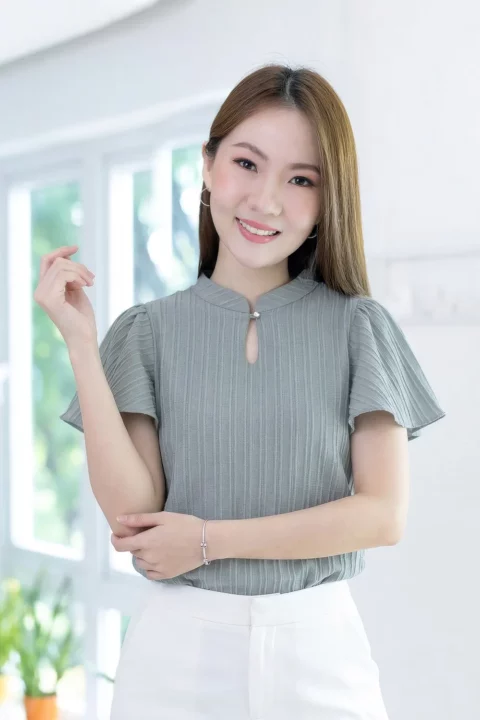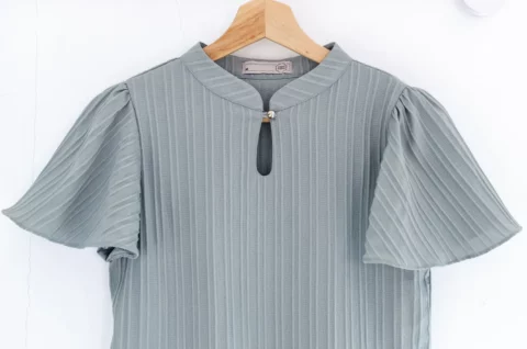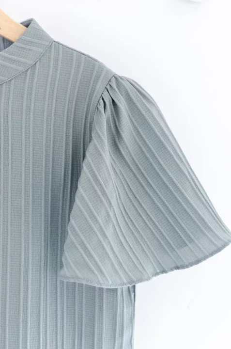 MT5941 Front Keyhole Butterfly Sleeve Blouse – Textured Grey