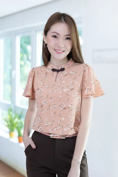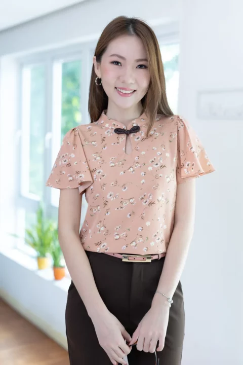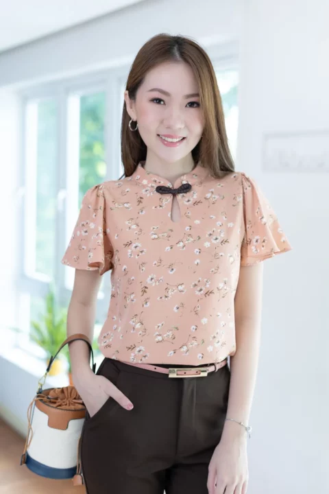 เสื้อทรงงามๆในอารมณ์ใหม่! ด้านหน้าผ่าหยดน้ำติดกระดุมผ้าถัก ได้ฟีลแบบจีนๆ แขนผีเสื้อพลิ้วๆใส่แล้วรู้สึกสวยละมุน เนื้อผ้านิ่มเนียน ลายดอกไม้ น่ารัก สดใสมากค่ะ