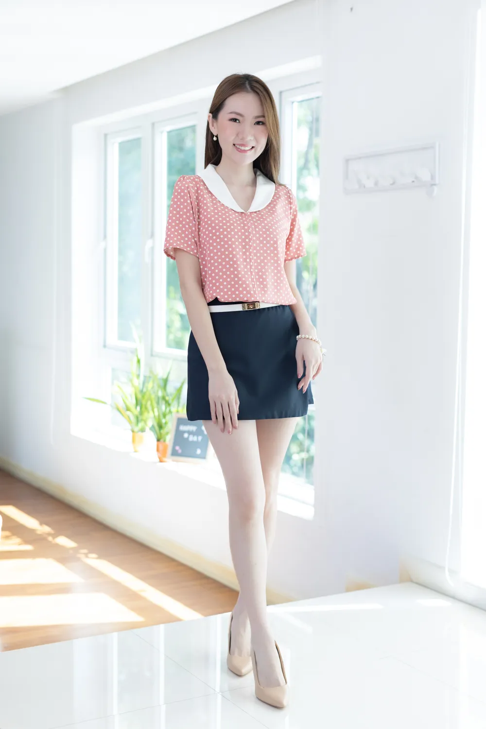 เสื้อปกบัวโค้งน่ารัก ตัดต่อคัตติ้งกลางลำตัว แขนสั้นแบบไม่สั้นมาก ผ้าไหมอิตาลีเนื้อดี เนียนสบายผิว ทรงเสื้อเป็นแบบสวมไม่มีกระดุมหลังคอ สวยเรียบง่าย