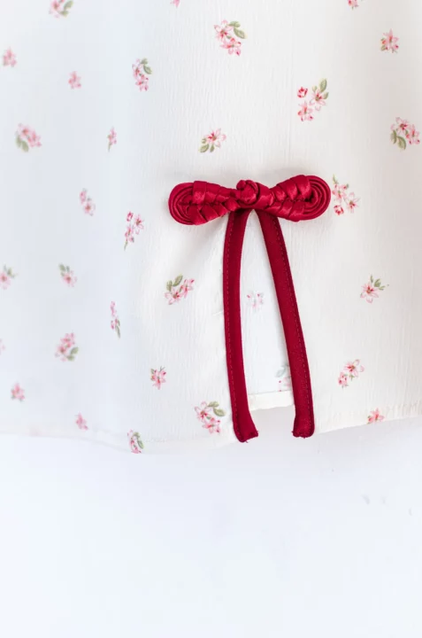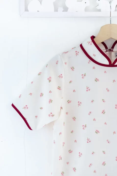 เสื้อคอจีนทรงคอปิดสูง กุ๊นงามๆด้วยสีตัดกัน ใส่แบบปล่อยโชว์ชายเสื้อ ผ่าข้างตกแต่งกุ๊นและกระดุมสไตล์จีน ใช้ผ้าพิมพ์ลายดอกไม้ มีลายอัดย่นๆในตัว สวยสดใสรับปีใหม่ 🪭🐦🔥