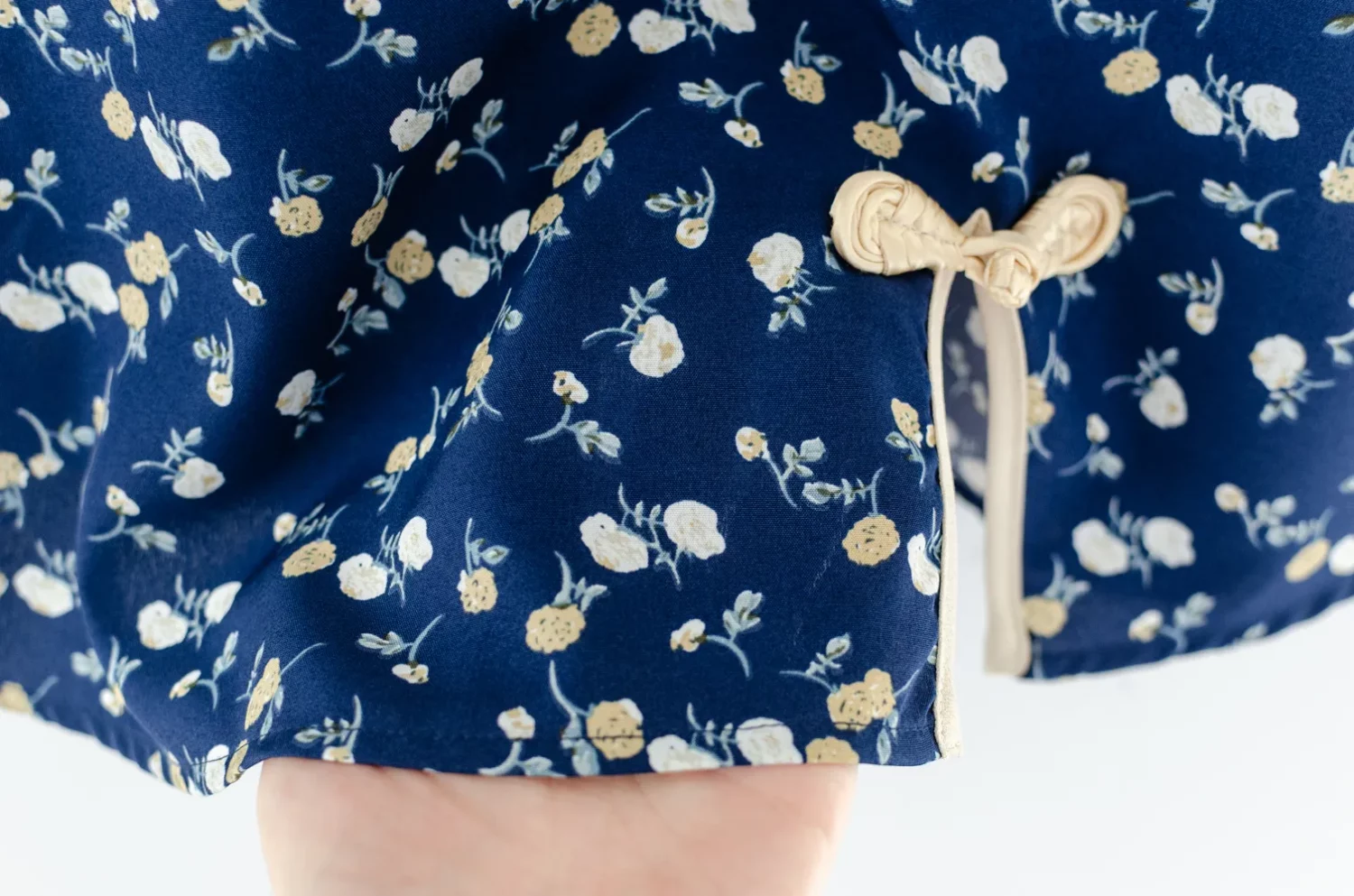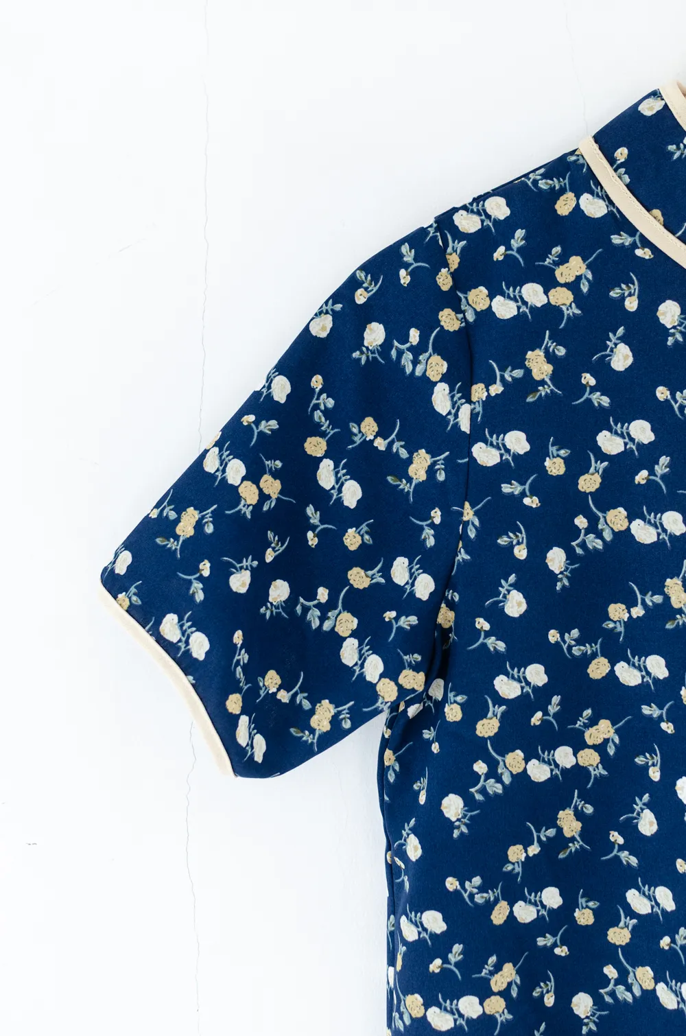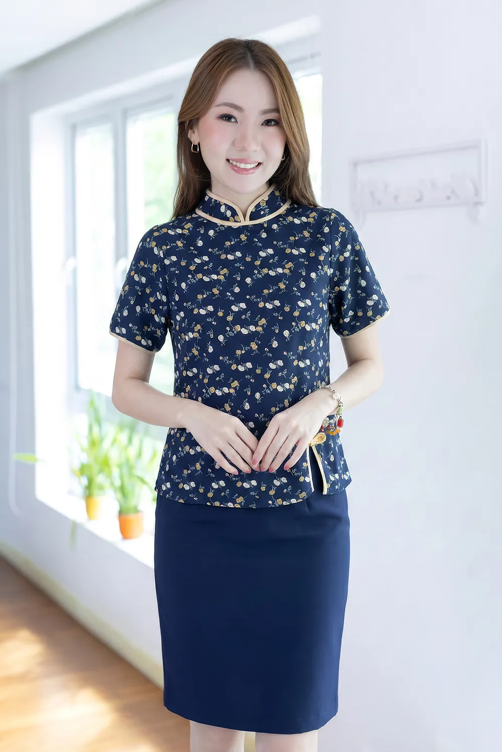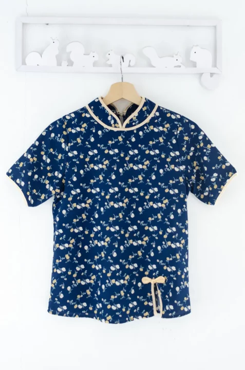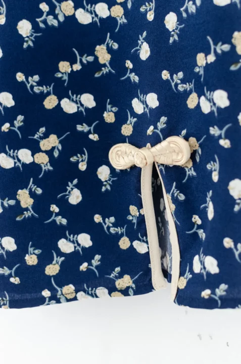 เสื้อคอจีนทรงคอปิดสูง กุ๊นงามๆด้วยสีตัดกัน ใส่แบบปล่อยโชว์ชายเสื้อ ผ่าข้างตกแต่งกุ๊นและกระดุมสไตล์จีน ใช้ผ้าพิมพ์ลายดอกไม้ เนื้อเนียนสบายผิว สวยสดใสรับปีใหม่ 🪭🐦🔥
