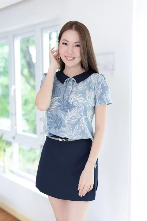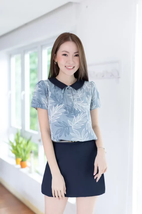 เสื้อปกบัวแหลม แต่งดีเทลสายโบว์กลางคอ ให้ลุคดูสดใสขึ้น มีทั้งลายกราฟิก ลายดอก และลายตาราง สีคอปกตัดกับตัวเสื้อช่วยเพิ่มมิติให้ดีไซน์ดูเก๋ไม่ซ้ำ แขนสั้น ใส่ง่าย เหมาะทั้งวันทำงานและวันพักผ่อน แมตช์กับกระโปรงหรือกางเกงก็ดูดี