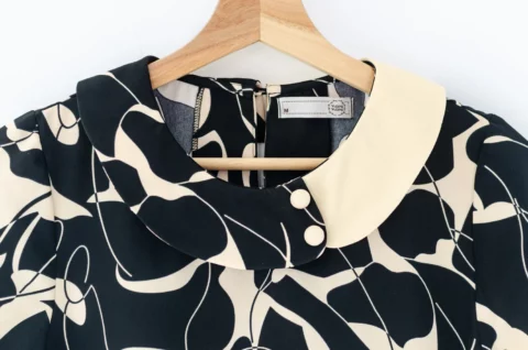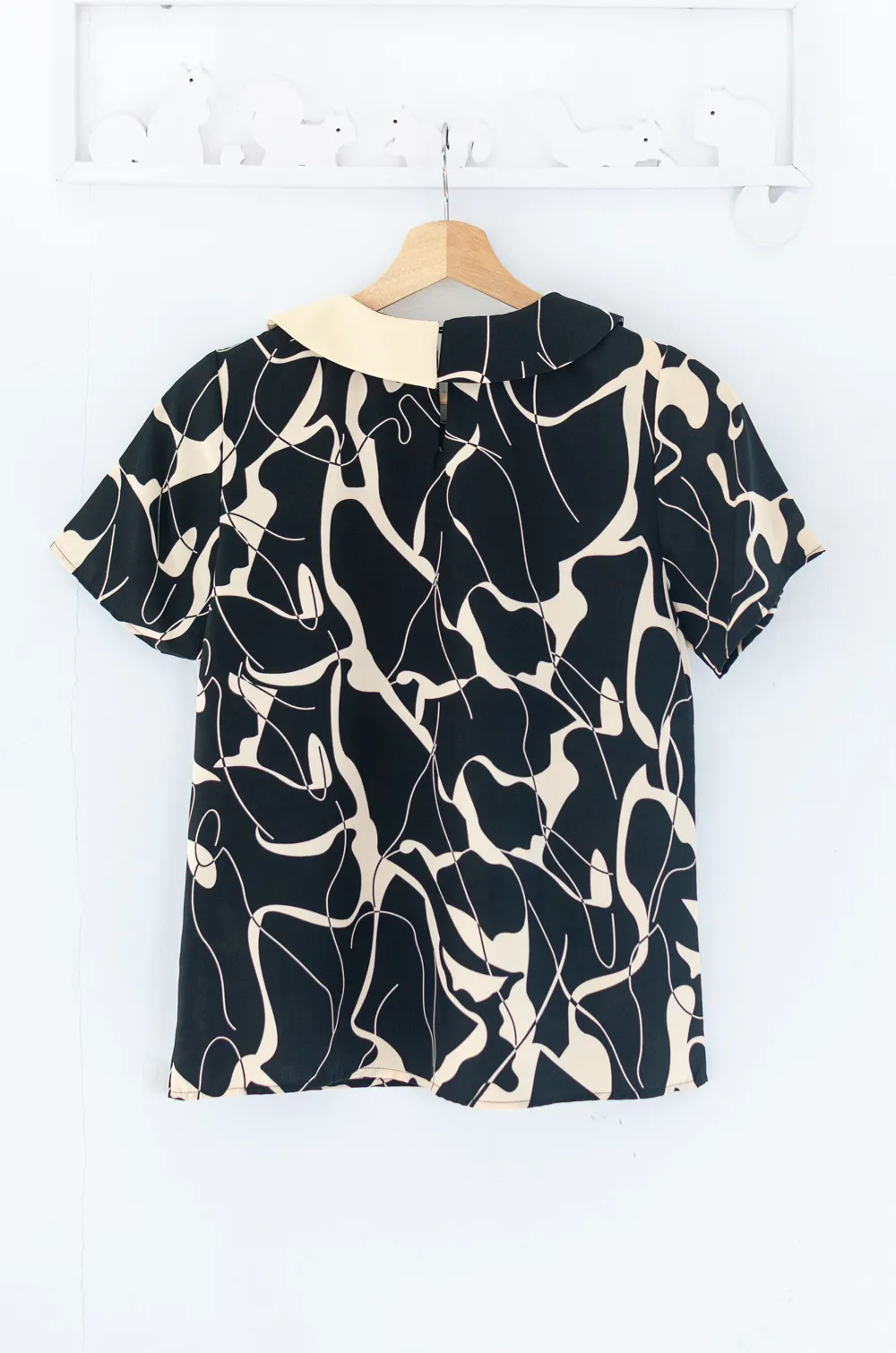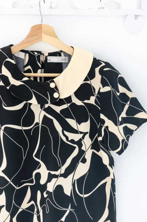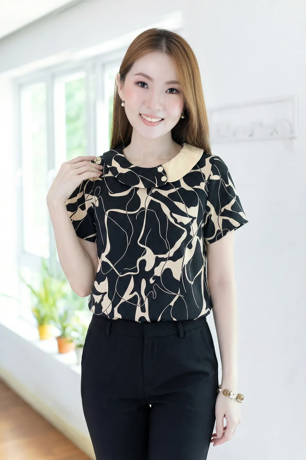 MT6401 Contrast Collar Buttoned Blouse – Affogato Black