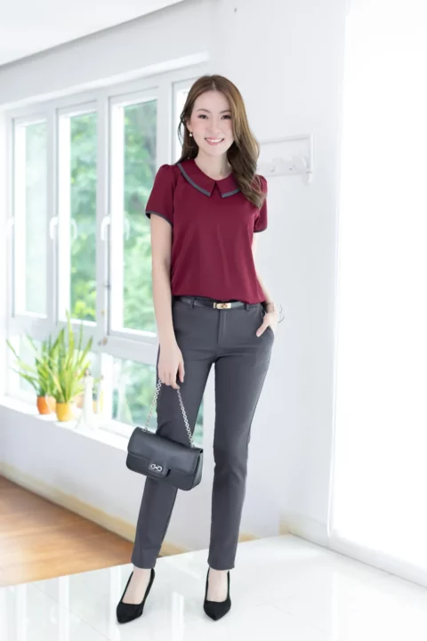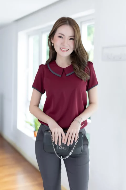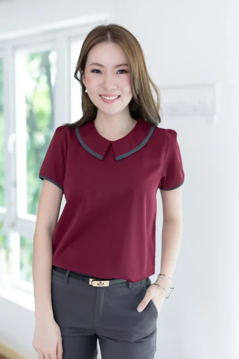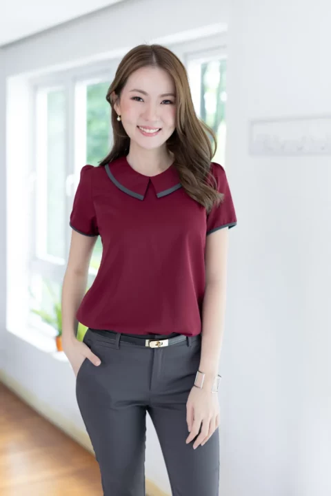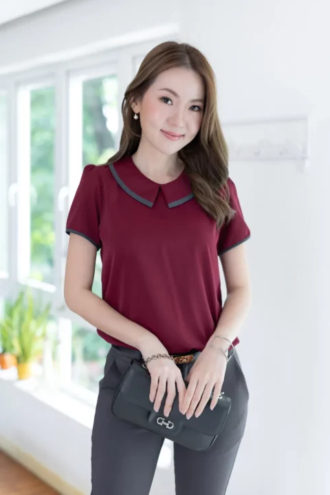 MT6610 Point Collar Sophie Blouse – Maroon
