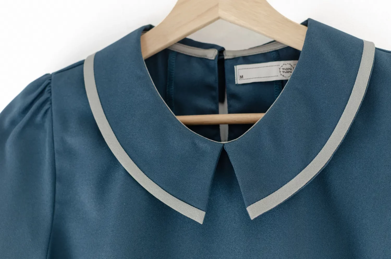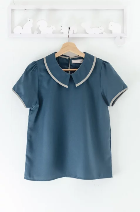 เสื้อทำงานทรงปกบัวตัดปลายแหลม แขนสั้น แต่งขอบลายจุด คลาสสิคใส่ได้เรื่อยๆเลย