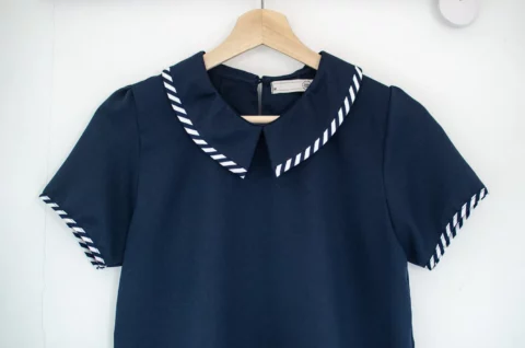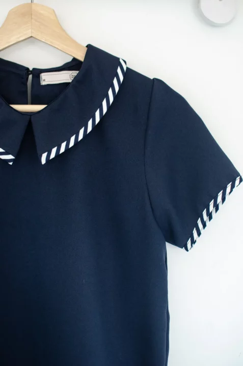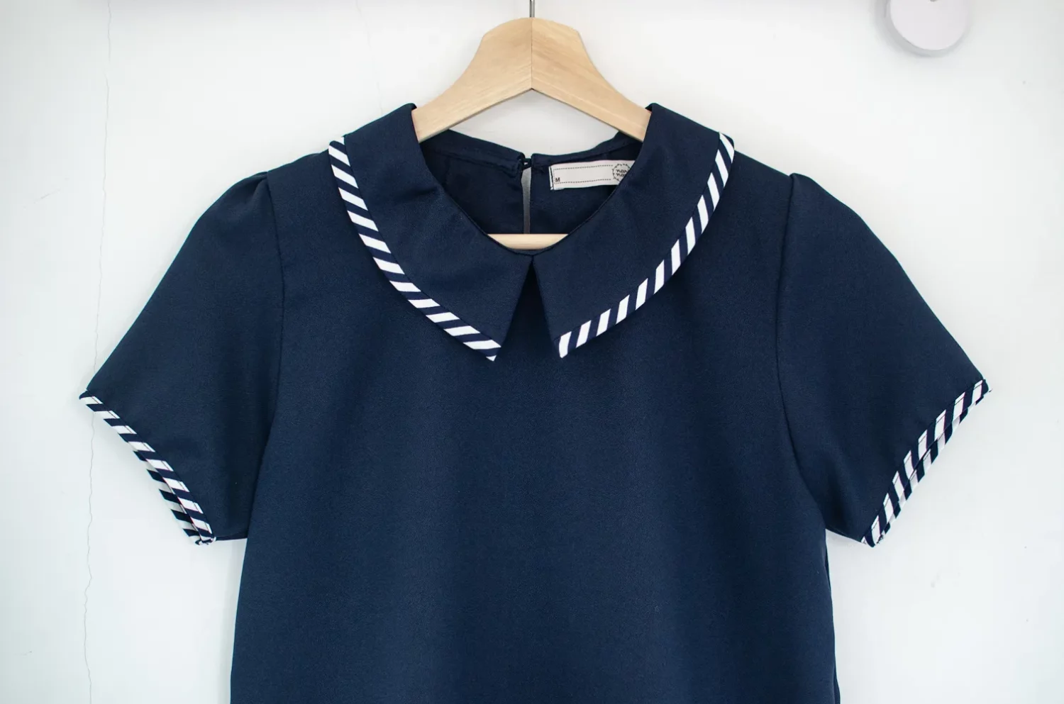 เสื้อทำงานทรงปกบัวตัดปลายแหลม แขนสั้น แต่งขอบลายจุด คลาสสิคใส่ได้เรื่อยๆเลย