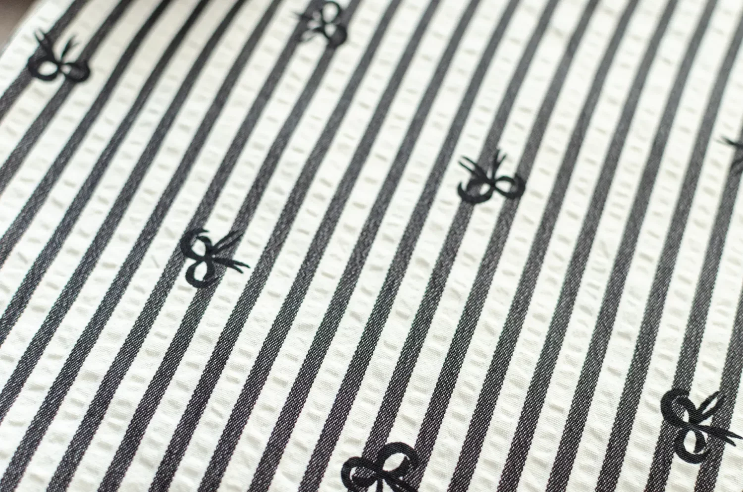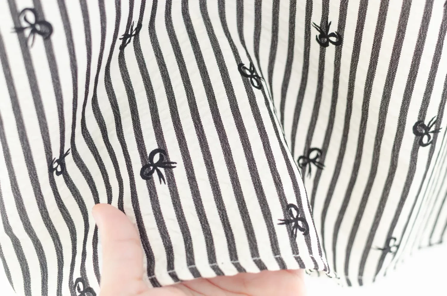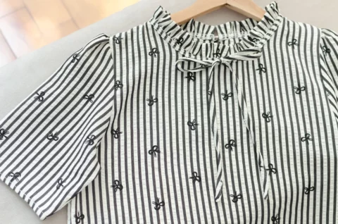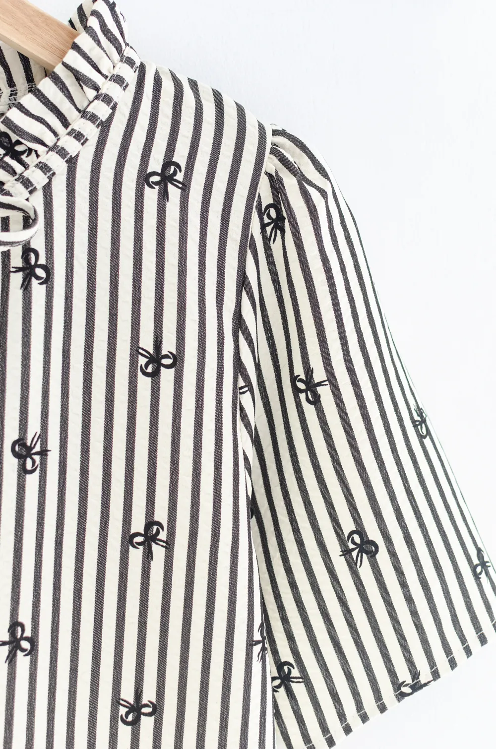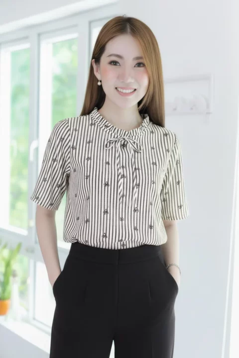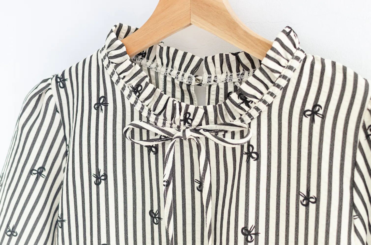 MT6752 Ruff Bow Collar Striped Blouse – Vanilla