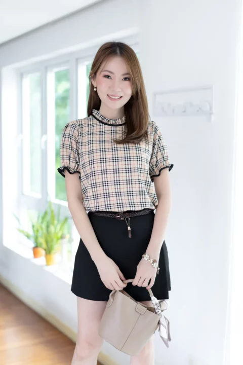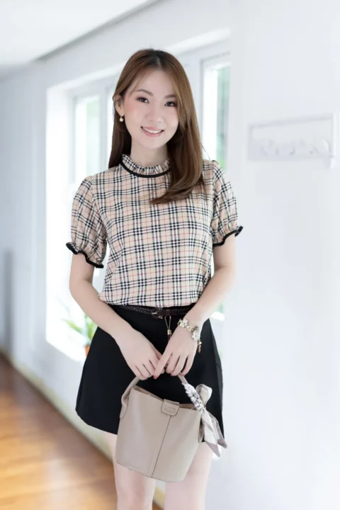 MT6753 Ruff Collar Puff Sleeve Blouse – Cream