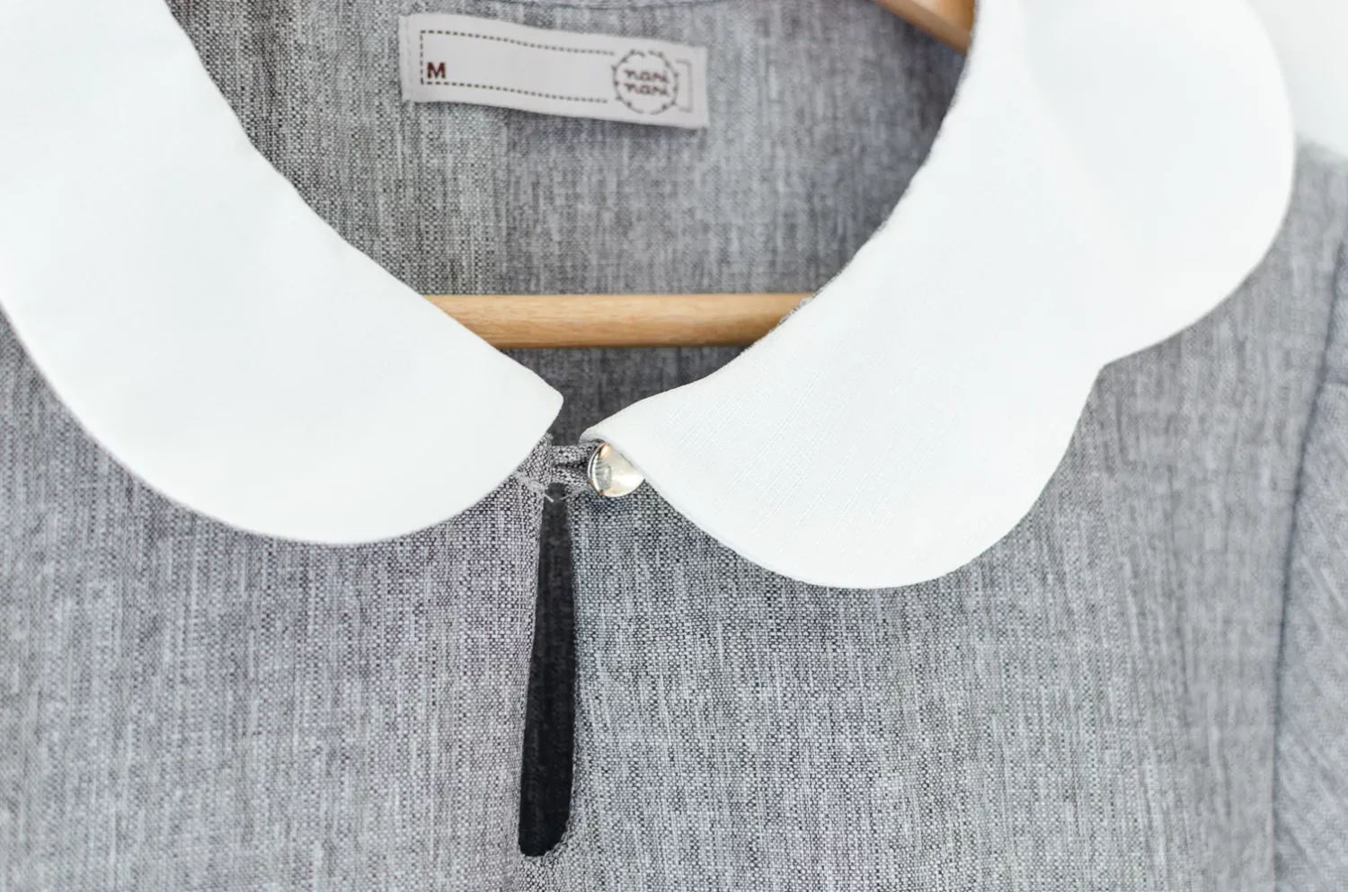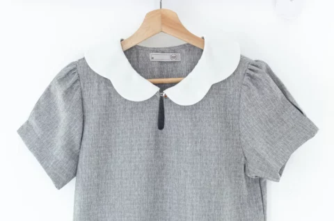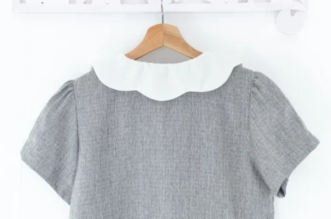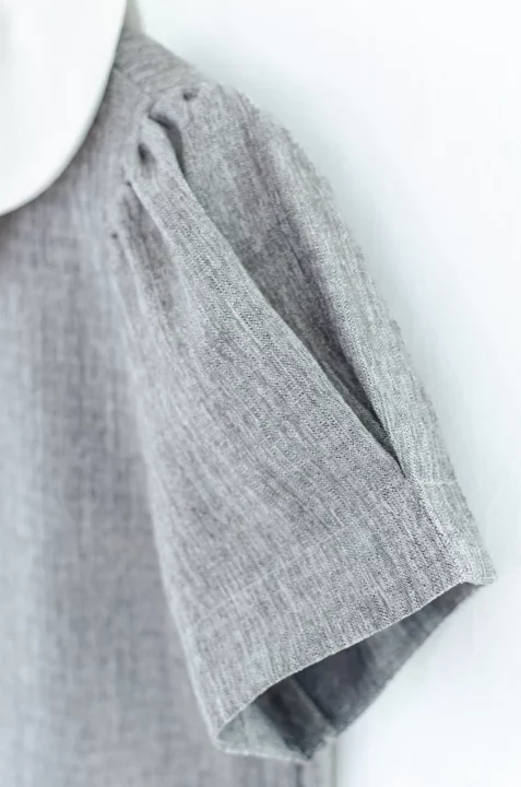 MT6906 Petal Collar Folded Sleeve Blouse – Grey Marl