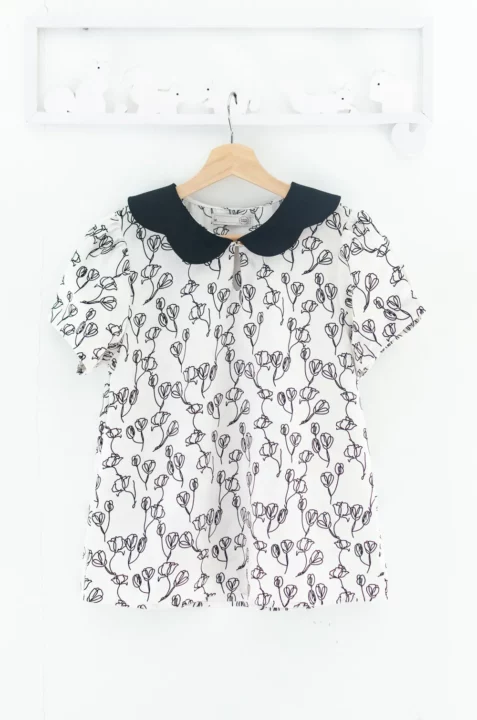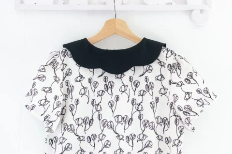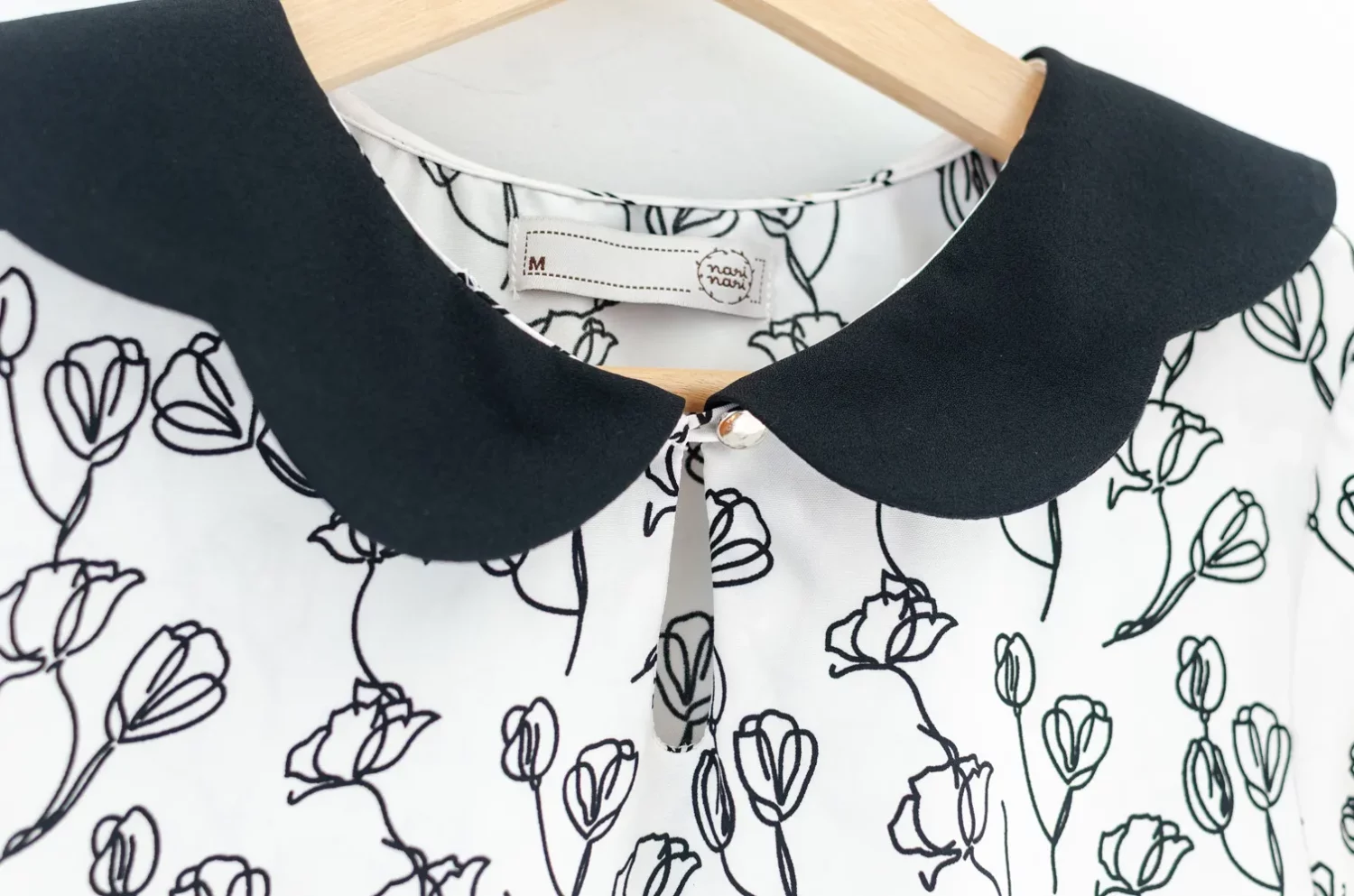 MT6906 Petal Collar Folded Sleeve Blouse – Off-White