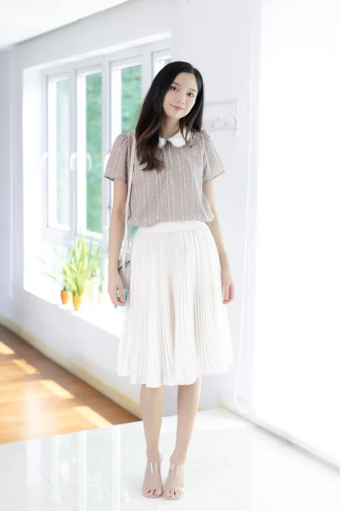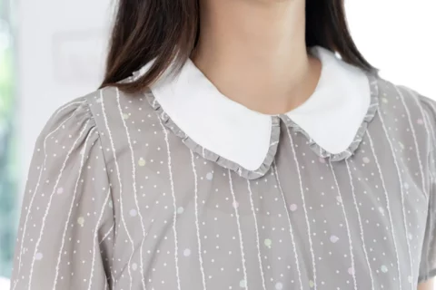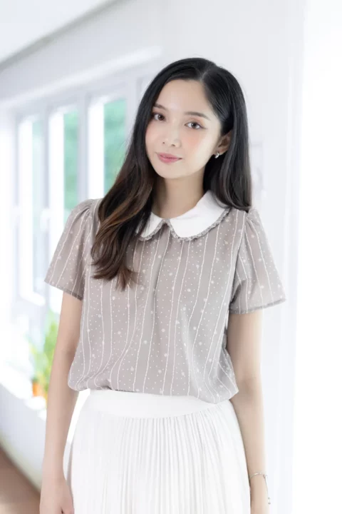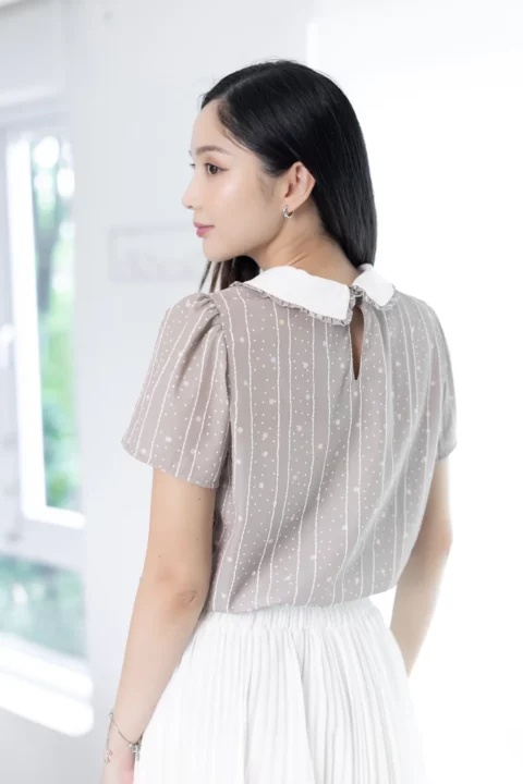 MT7101 Frill Peter Pan Collar Dot Blouse – Gauzy Taupe