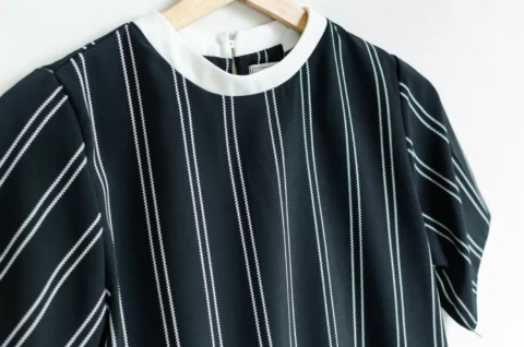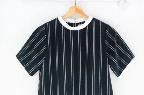 เสื้อที่มีเส้นสายเรียบๆ คอกลมคลีนๆ แขนไม่สั้นเกิน ทรงนี้ตั้งใจทำมาแบบเรียบง่ายอย่างตั้งใจ ใช้ดีเทลสีตัด ลุคที่ได้จะแมทช์เข้ากับรองเท้าและกระเป๋าได้หลากหลาย เพิ่มความสนุกในการแต่งตัวได้ง่าย แค่เปลี่ยนแอ็กเซสซอรี ก็ได้ลุคใหม่ทันที