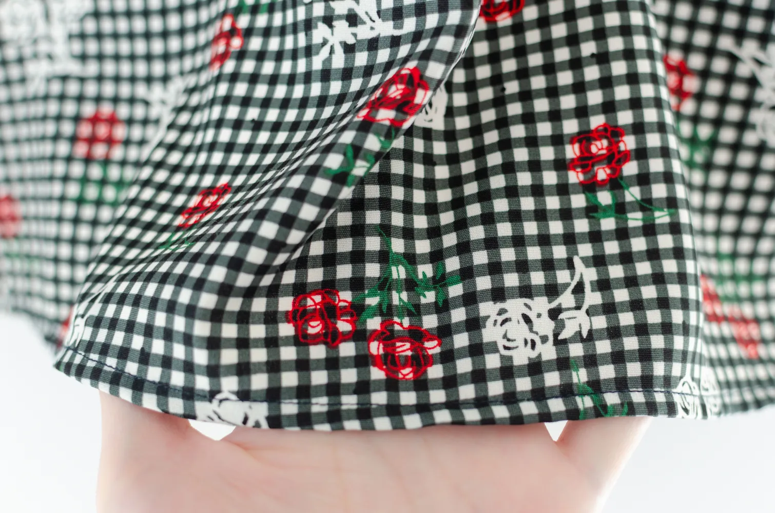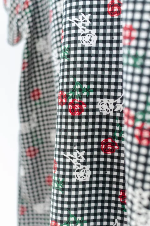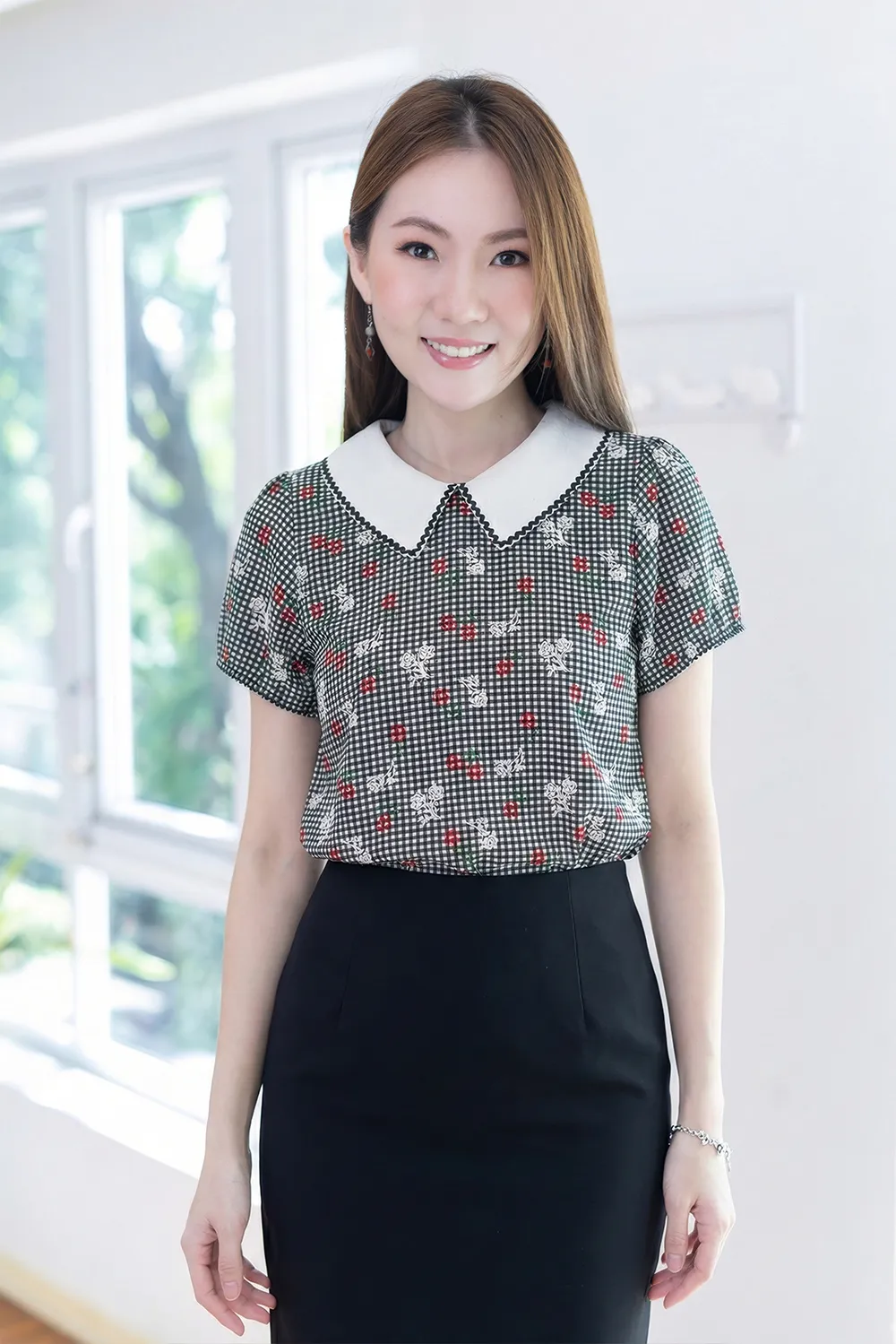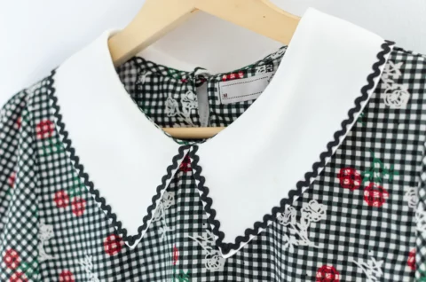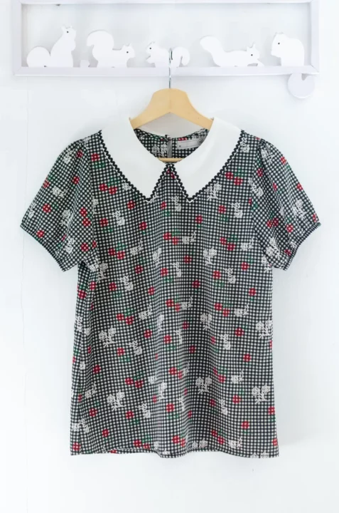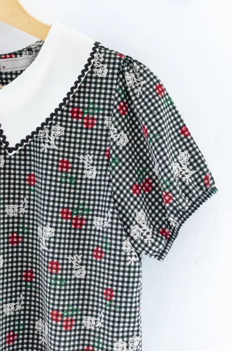 MT7350 Wavy Trimmed Collar Blouse – Black Gingham
