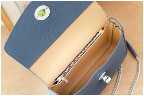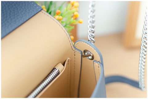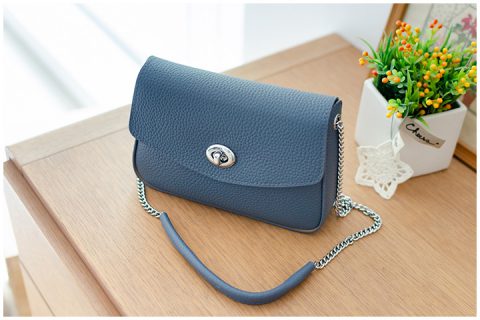 กระเป๋าหนังแท้ ขนาดน่ารักเหมาะมือ ทรง Crossbosy ใช้สายโซ่สีเงิน โซ่น้ำหนักกำลังดี แต่งแถบหนังหุ้มสั้นๆกันตรงหัวไหล่ ด้านหน้าเป็นฝาปิดล็อคแบบหมุน แข็งแรงปลอดภัย ด้านในมีช่องซิปแยกเล็กๆอีกช่อง งานอะไหล่ดีมาก สวยทนทาน รวบสายไว้ด้านในกระเป๋า ปรับถือเป็นคลัชก็ได้อีกลุคค่า เข้ามา 4 สีสวย คลาสสิค น้ำตาลกาแฟ ดำ ครีม และ กรมท่าค่ะ