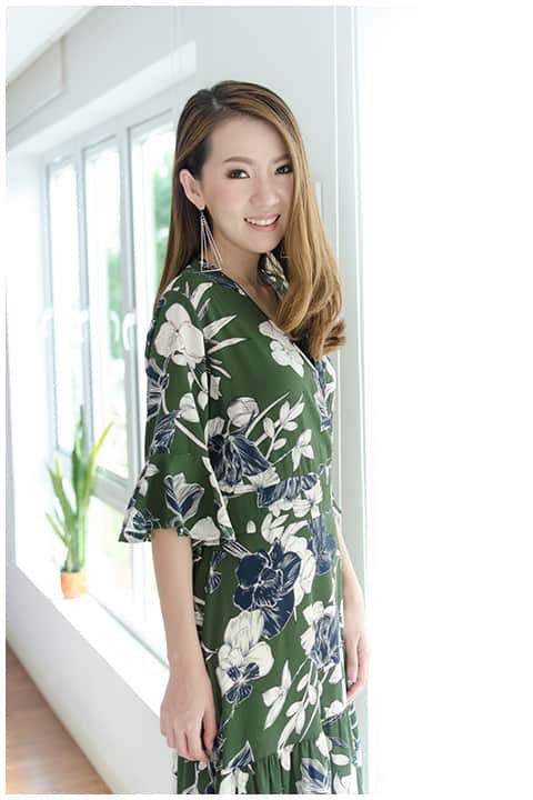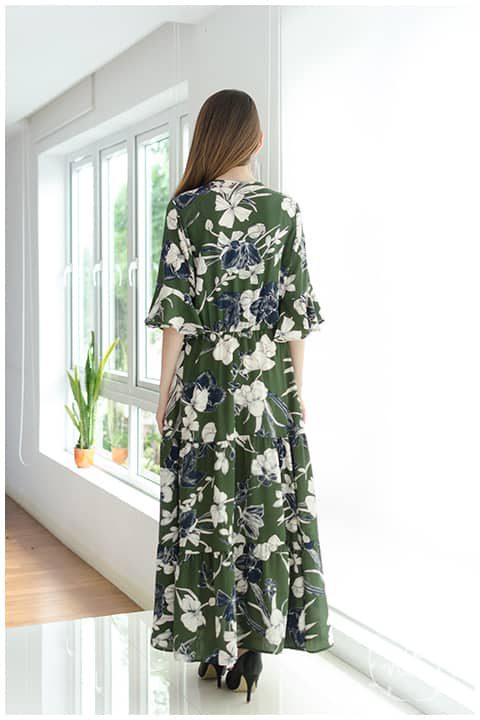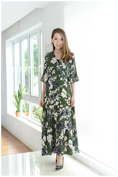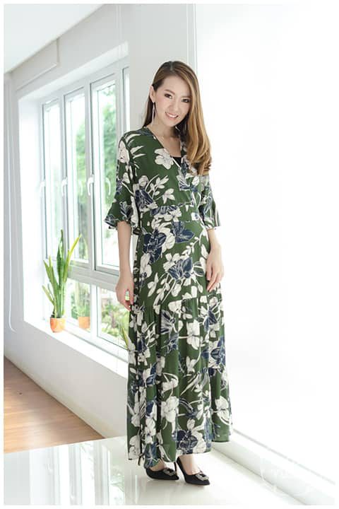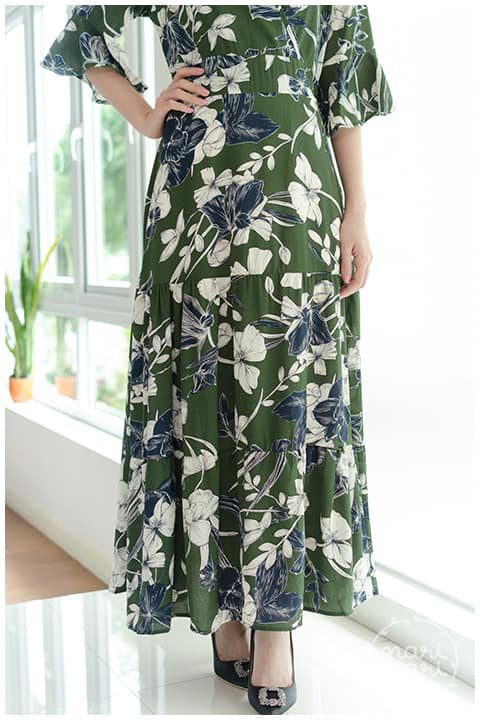 แม็กซี่เดรส ผ้าชีฟอง Bubble อัดเนื้อย่นๆ นิดๆ รีดง่าย ไม่ค่อยยับ พิมพ์ลายดอกไม้สีขาว/กรมท่า สวยเด่น ช่วงบนเป็นทรงป้าย คอวี แขนยาวคลุมข้อศอก ปลายบานเล็กน้อย ช่วงกระโปรงต่อผ้า 3 จังหวะ เป็นทรงบานๆ มีซับในช่วงกระโปรง ผ้ามีน้ำหนัก ทิ้งตัวสวย สีสวยขับผิวด้วย ใส่สวยจริงจังค่า