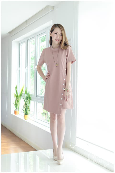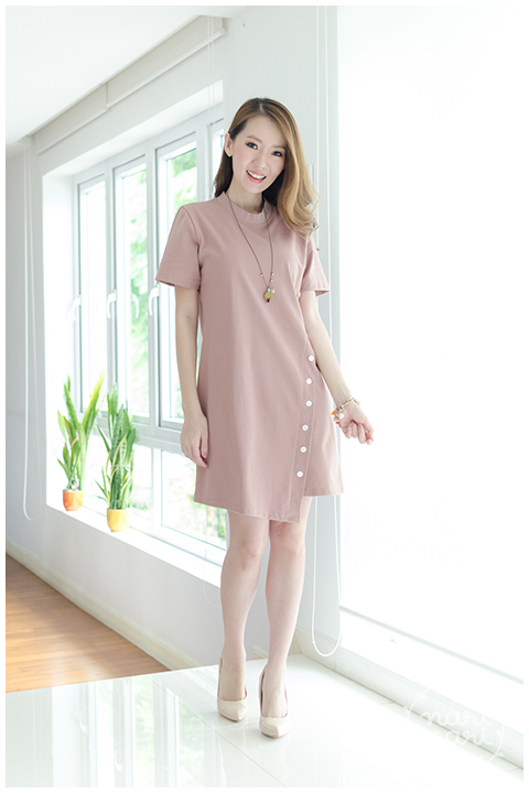 เดรสสไตล์ลำลอง ผ้าลาคอสต์เนื้อดีมาก สีน้ำตาลนู้ดๆ คอกลม แขนสั้น ทรงเอนิดๆ แต่งกระดุมหลอกเฉียงๆ ลงมาถึงชายเดรส เก๋ด้วยการแต่งชายเทๆ ไม่เท่ากัน ตามแบบฉบับนาริ.นาริ ผ้าดี ใส่สวย สบายด้วยค่า